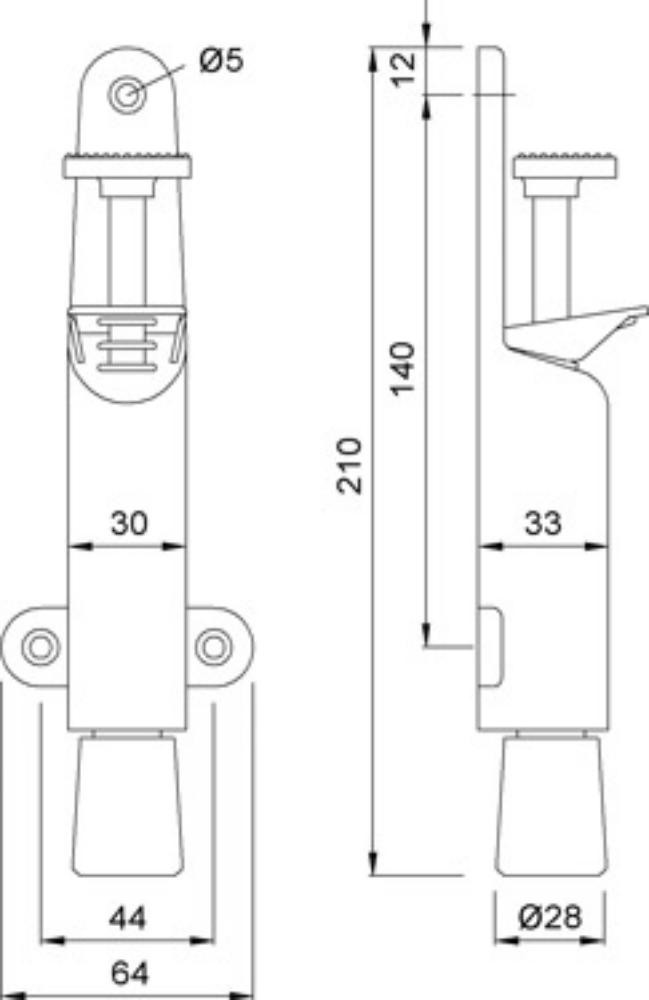 KWS 1028 Türfeststeller 50 mm Hub, abgerundet sw 4041518131608
