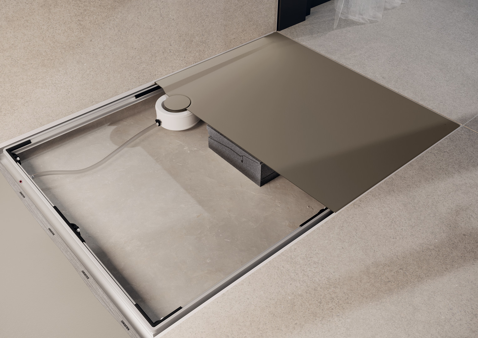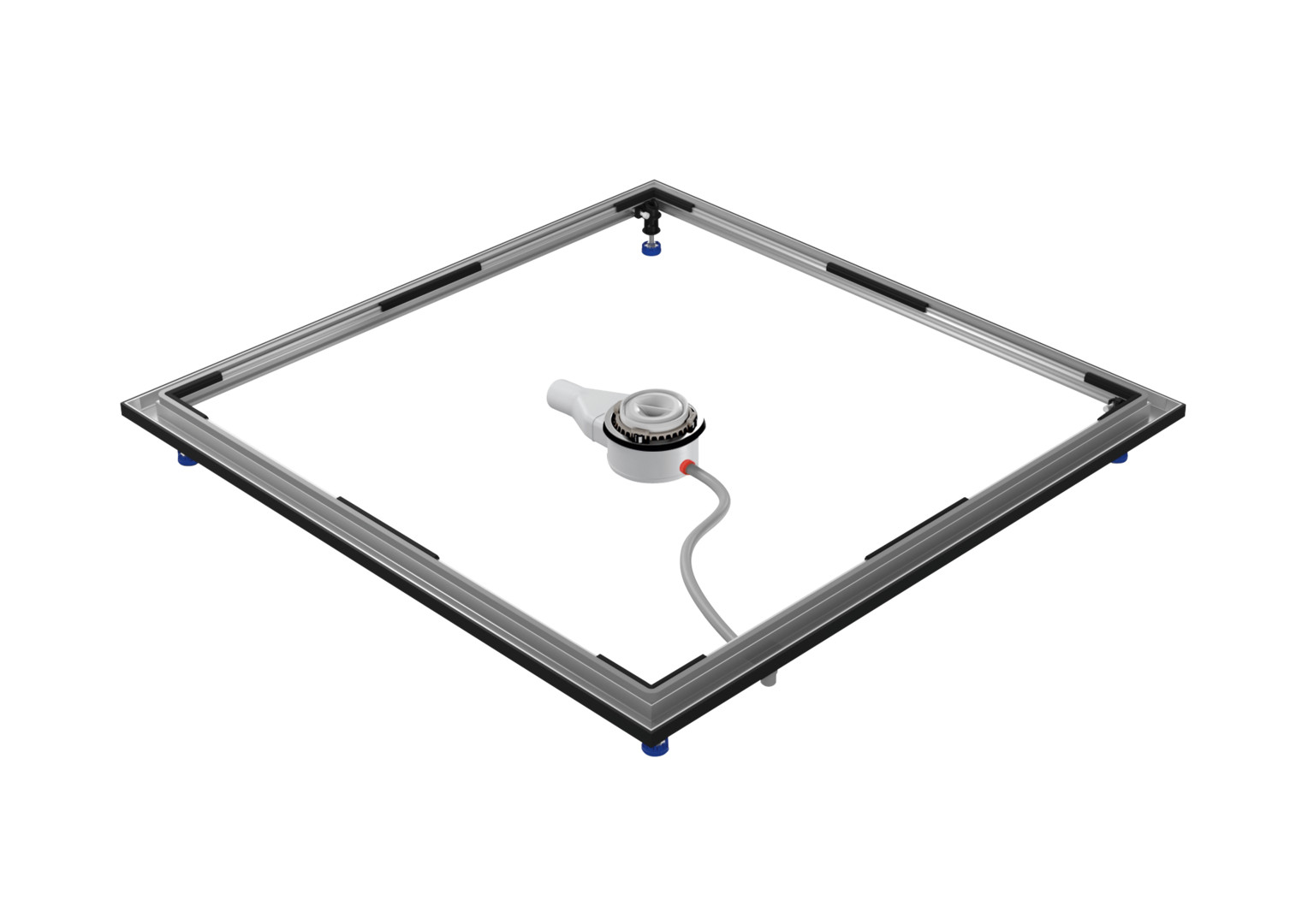 vormontierter Aluminiumrahmen für den Einbau rechteckiger Duschflächen von Kaldewei, kann vor oder nach Estrichaussparung gesetzt werden, Duschfläche wird nach sämtlichen Estrich- und Fliesenarbeiten gesetzt, erfüllt Schallschutzanforderungen gem. DIN 4109, DIN 4100 sowie SIA 181, mit Abdichtband, 2x Wandecken, 4x Multifunktionsecken, Butyl-Dichtband für Innenabdichtung, vormontiertes Schallschutzband am Rahmen, schallentkoppelte 3D-Flex-Füße zur horizontalen und vertikalen Verstellung (Höhenverstellung 49-164 mm) mit Bodenbefestigung, Sechskantschlüssel zur Höhenverstellung der Füße, Schalungshilfen/-platten zur Erstellung von Estrichaussparungen, Fliesenverlegehilfe