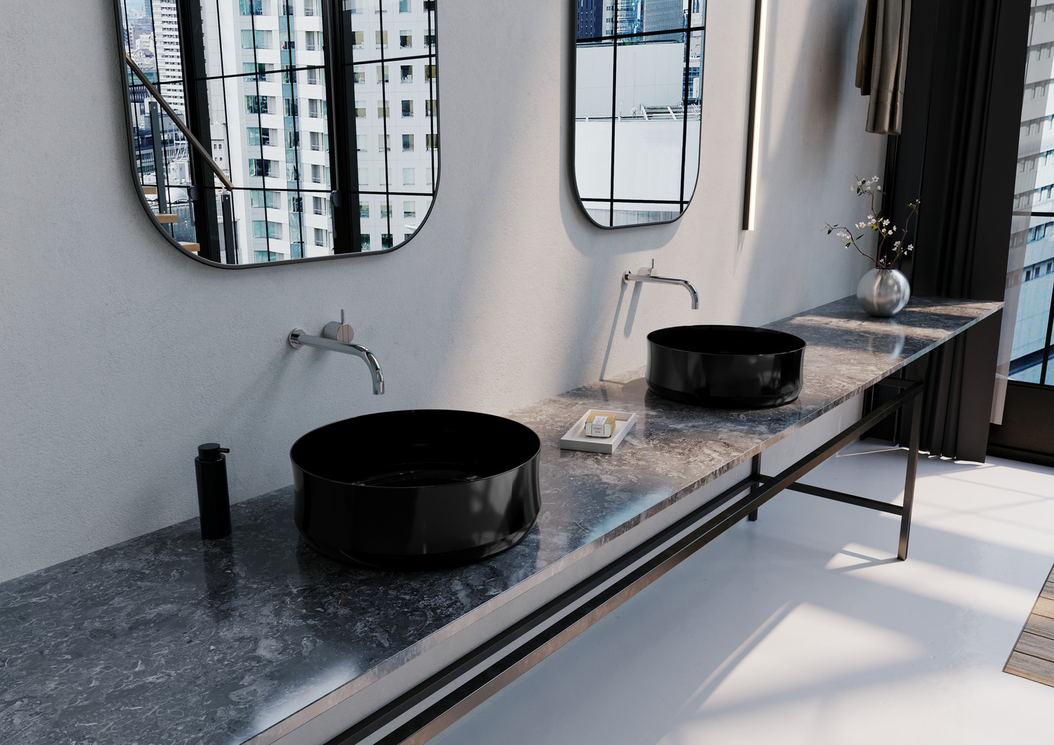 Kaldewei Waschtisch-Schale MING 3187 d= 40cm, ohne Hahnloch, chrom, Perl-Effekt, schwarz W48794