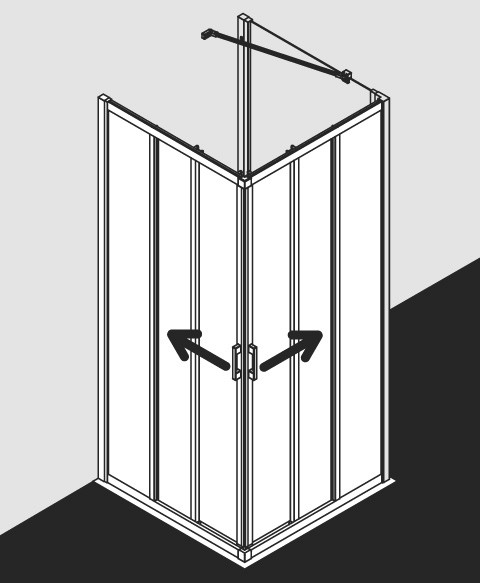 besteht aus LI E2R Eckeinstieg Halbteil rechts und LI E3L Eckeinstieg Halbteil links, Halbteile unterschiedlicher Breite beliebig kombinierbar, Kombination LI E3R/L Eckeinstieg 2-teilig (Gleittüren), Halbteil und LI E3R/L Eckeinstieg 3-teilig (Gleittüren) Halbteil nicht möglich, teilgerahmter Eckeinstieg mit zwei Gleittürsegmenten, je nach einer Seite öffnend, mit zwei Festfeldern, Verglasung mit 4 mm Einscheiben-Sicherheitsglas nach EN 12150, optional mit Pflegeleicht-Beschichtung KermiCLEAN, Profile und Griffleisten aus eloxiertem Aluminium, Griffe aus Metall, bei Oberfläche silber mattglanz und KermiEXTRA Griffe und Eckverbinder in edlem Chrom, Verstellmöglichkeit im Wandprofil 25 mm, Gleittürsegmente mit Magnet-Aushängemechanismus zur Reinigung nach innen schwenkbar, kugelgelagerte Laufrollen, durchgehende Magnetleisten und Dichtprofile, mit Bodenprofil (Höhe 42 mm), mit Befestigungsmaterial, geprüft nach DIN EN 14428 (CE) und PPP 53005 (TÜV/GS)