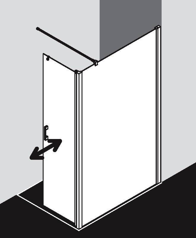 90° Stabilisierung, mit beweglichem Flügel, 90° nach innen und außen schwenkbar, mit Wandbefestigung, mit 90° Stabilisierung, Verglasung mit 5 mm Einscheiben-Sicherheitsglas nach DIN EN 12150, Profile aus eloxiertem Aluminium, Griffe aus Metall, Griffe und Gelenke in edlem Chrom, Verstellmöglichkeit im Wandprofil 25 mm, Profilgelenk mit Hebe-Senk-Mechanismus, waagerechte Dichtleiste mit Wasserabpralleffekt, ohne Bodenschwelle (bodenfrei) installierbar, Befestigungsmaterial
