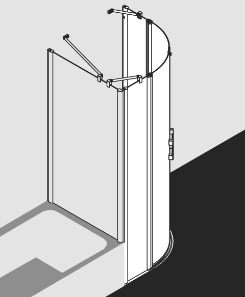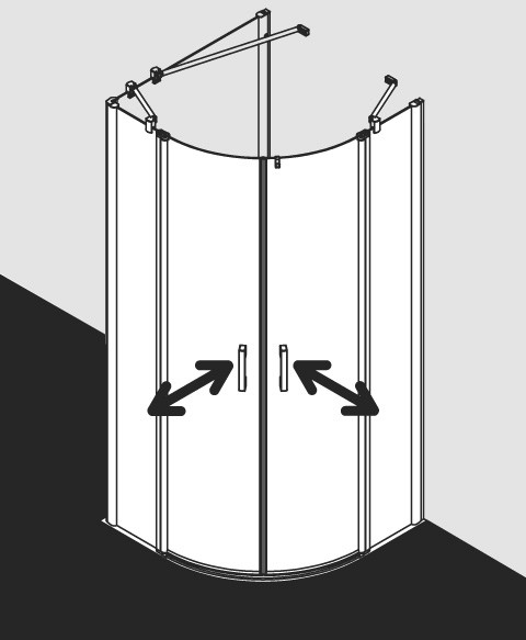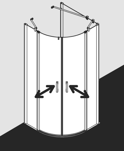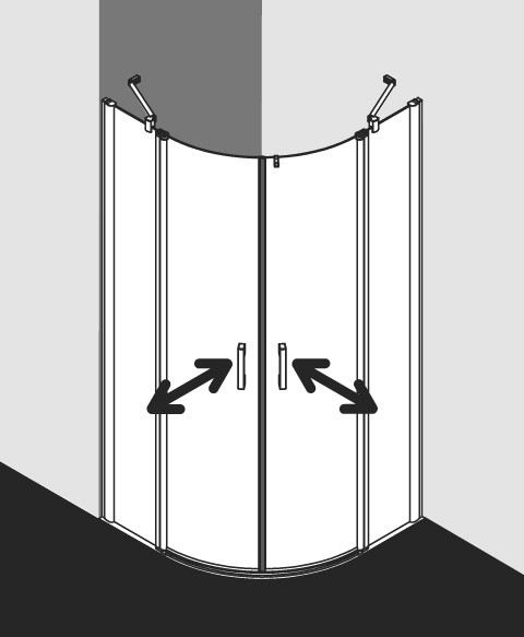 Kermi X-Like Viertelkreis-Pendeltür Radius 55 80 x 200 cm, ESG klar, silber hochglanz W225721