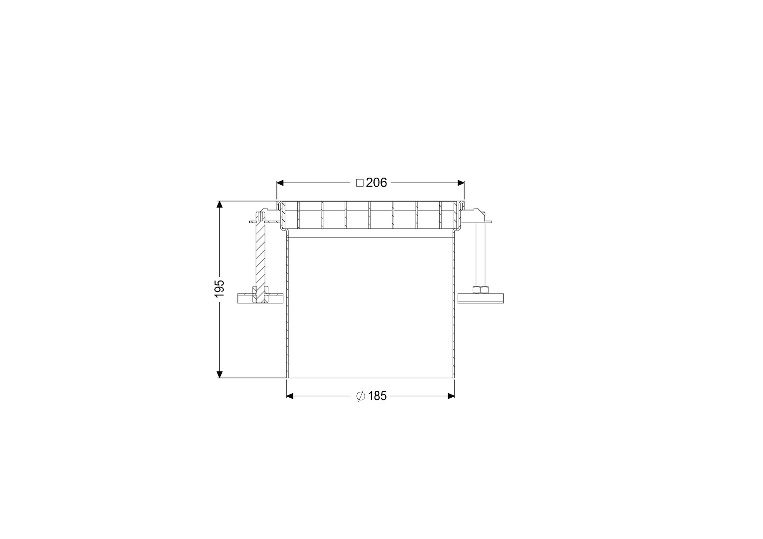 Kessel Aufsatzstück Ferrofix 206 x 206 mm, mit Gitterrost, ohne Klebeflansch