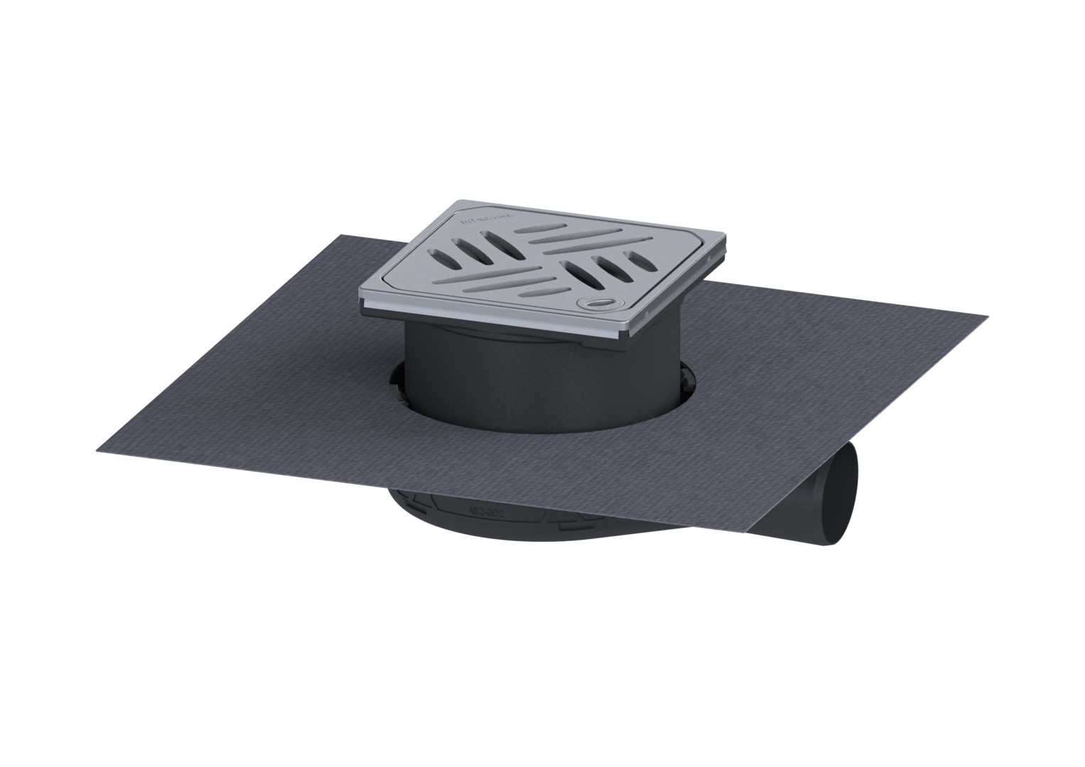aus ABS, Auslauf seitlich, herausnehmbarer Geruchsverschluss im Aufsatzstück, werkseitig angebrachte Dichtmanschette nach DIN EN 1253-6 und DIN 18534-1-W3-I, Abdeckung Designrost 120 x 120 mm (Rutschhemmklasse R9 nach DIN 51130 und C nach DIN 51097) und Rahmen (Höhe 16 mm) aus Edelstahl V2A, Klasse L 15, Sperrwasserhöhe 22 mm, Abflussleistung DN 40 0,9 l/s, Abflussleistung DN 50 0,8 l/s, Aussparungsmaße 350 x 350 mm