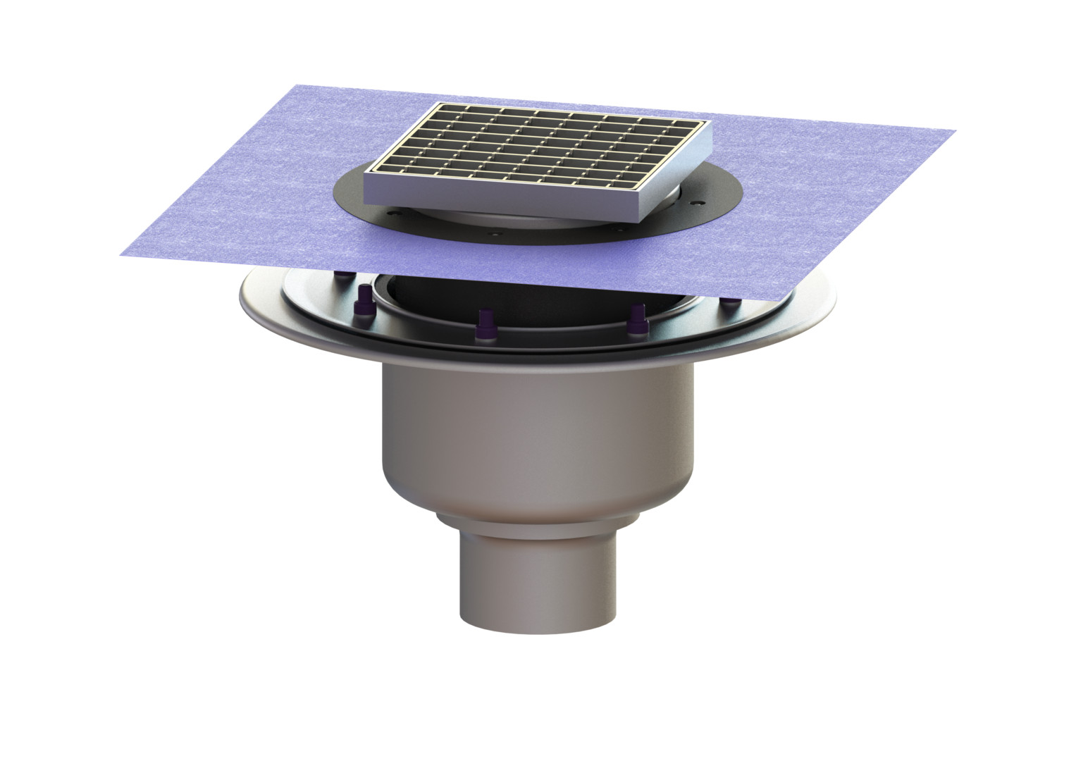 Kessel Bodenablauf Ferrofix 190 x 190 mm, Gitterrost, Auslauf senkrecht, mit Pressdichtungsflansch
