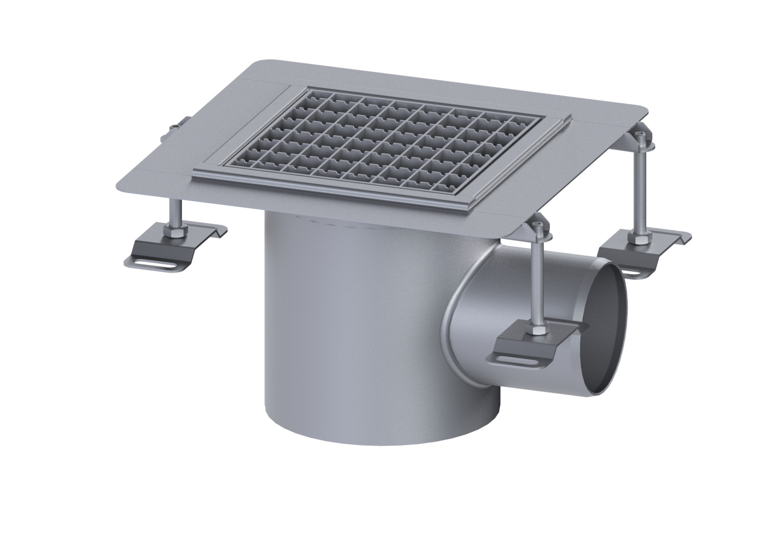 Kessel Bodenablauf Ferrofix Auslauf seitlich, DN 100, mit Abdeckung 230x230mm, Klebeflansch W555952