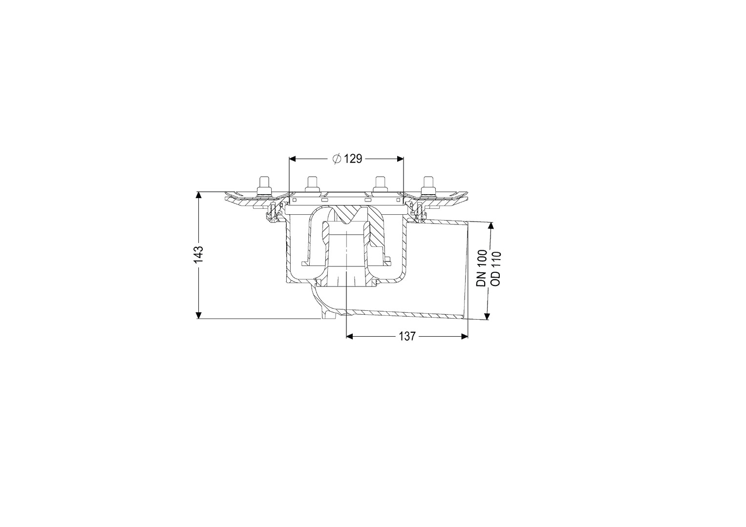 Kessel Bodenablauf-Grundkörper Ecoguss DN/DA 80/83, 134 x 108 mm, Auslauf seitlich, mit Pressdichtungsflansch W555790