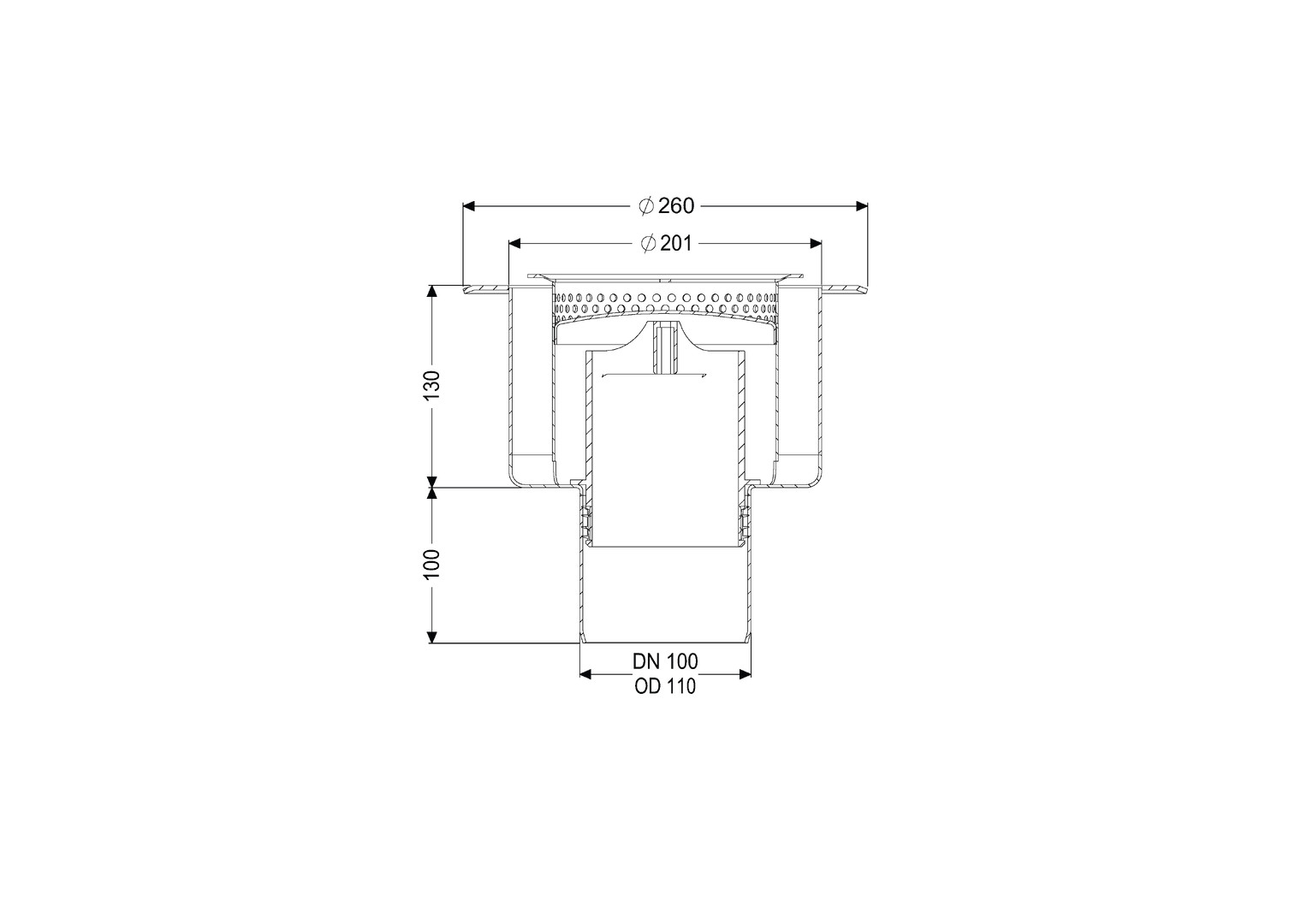 Kessel Bodenablauf-Grundkörper Ferrofix DN/DA 100/110, Auslauf senkrecht, mit Anschlussrand