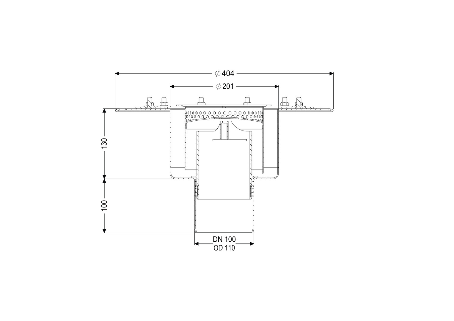 Kessel Bodenablauf-Grundkörper Ferrofix DN/DA 100/110, Auslauf senkrecht, mit Pressdichtungsflansch