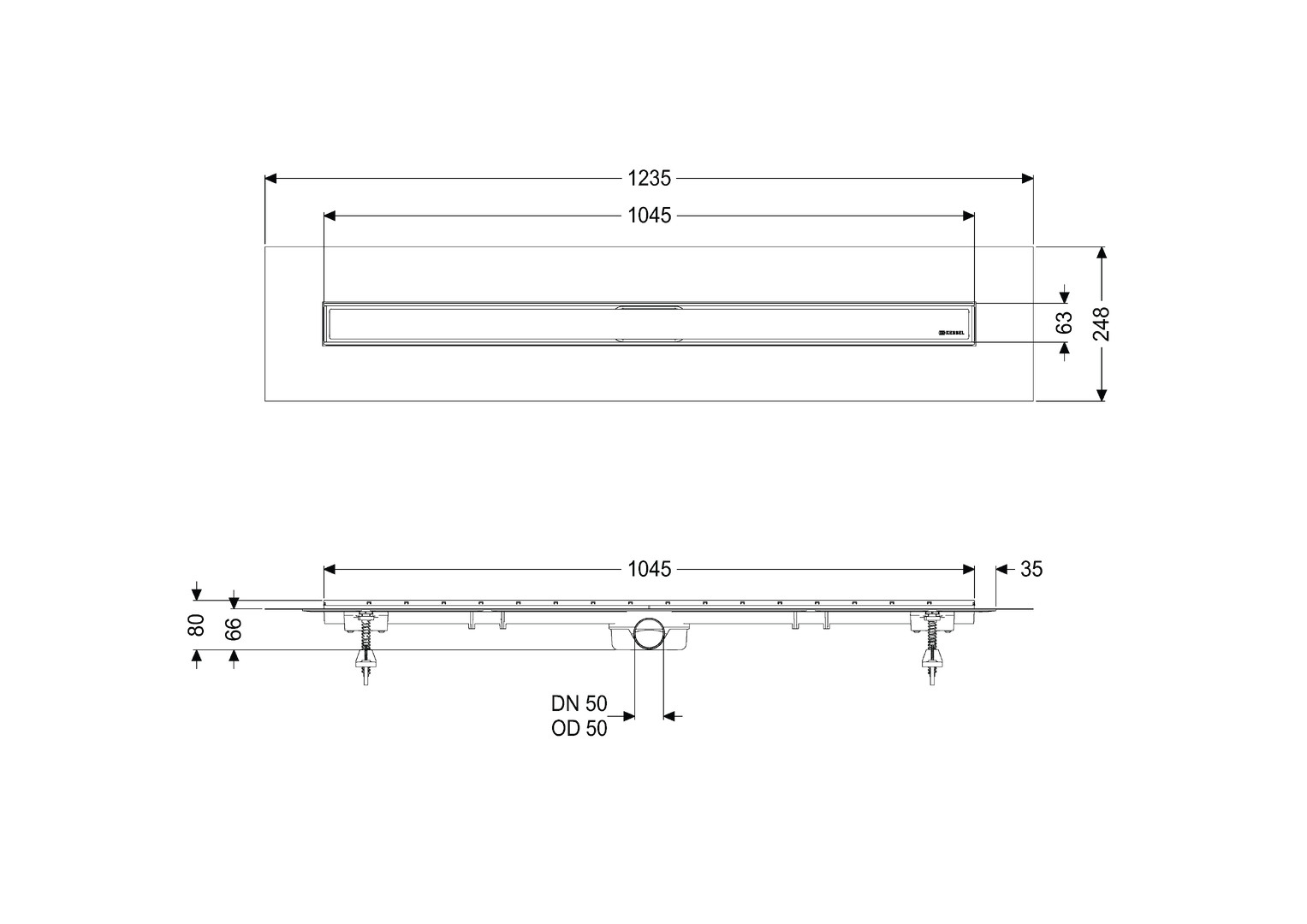 Kessel Duschrinne LINEARIS Compact 1050 mm, mit Montagefüße