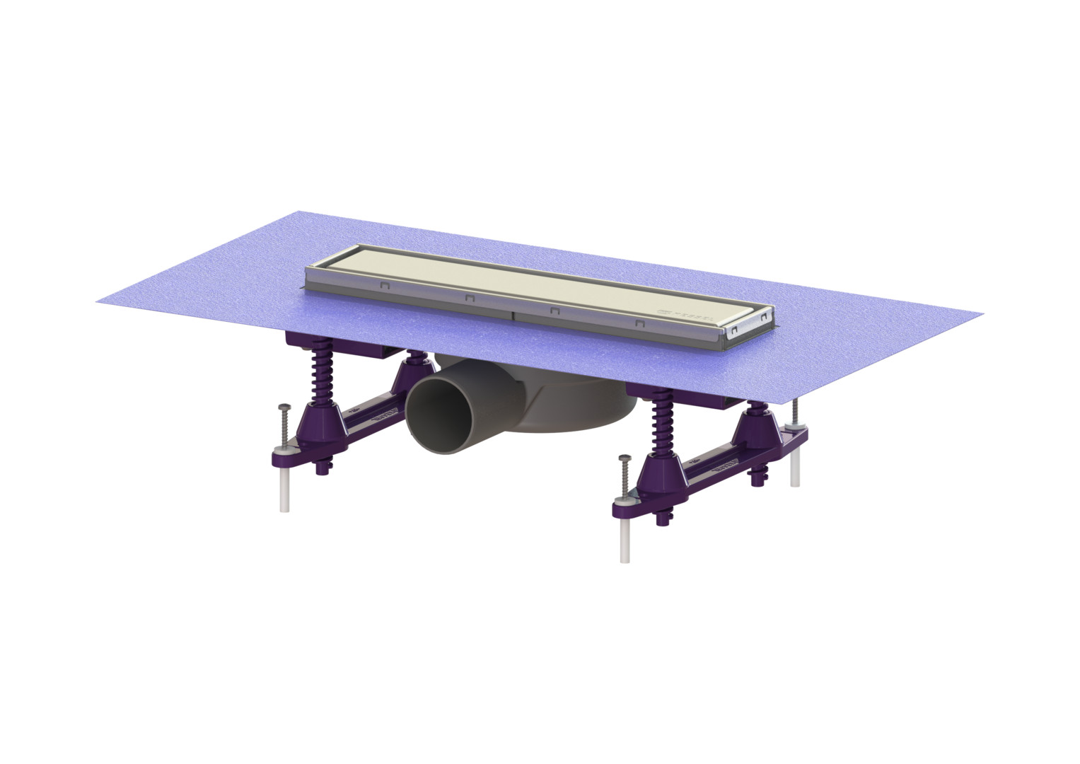aus ABS, Rahmen aus Edelstahl V2A, Auslauf seitlich DN 50, Einbautiefe nur 80 mm, Geruchsverschluss, für 300-650 mm Sickerwasseröffnungen vorbereitet, für 750-1150 mm mit Sickerwasseröffnungen, für Belagstärke 15 mm, werkseitig angebrachte Dichtmanschette nach DIN EN 1253-6 und DIN 18534-1-W3-I, Abdeckung aus Edelstahl V2A, kann gedreht eingelegt befliest werden (Einlegetiefe 12 mm), Klasse K 3, Sperrwasserhöhe 22 mm, Abflussleistung 0,6 l/s/0,7 l/s bei Anstau 10/20 mm