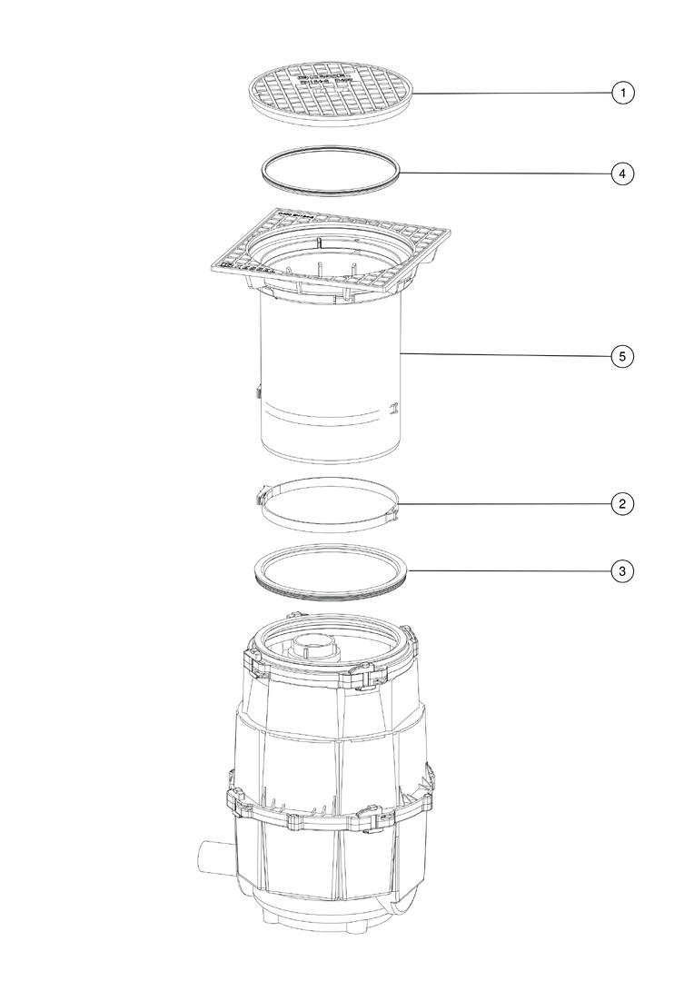 aus Kunststoff, für Abscheideranlagen Auto Mix & Pump, Auto Mix und Mix zum Einbau ins Erdreich, Einbautiefe 710-1080 mm, mit teleskopisch höhenverstellbares Aufsatzstück aus Kunststoff mit Klemmring, Abdeckung nach DIN EN 124 aus Guss, geruchsdicht verschlossen, Aushebeschlüssel, mit Storz-B-Kupplung R 2 1/2“ für Saugwagen, Entsorgungsleitung bauseitig
