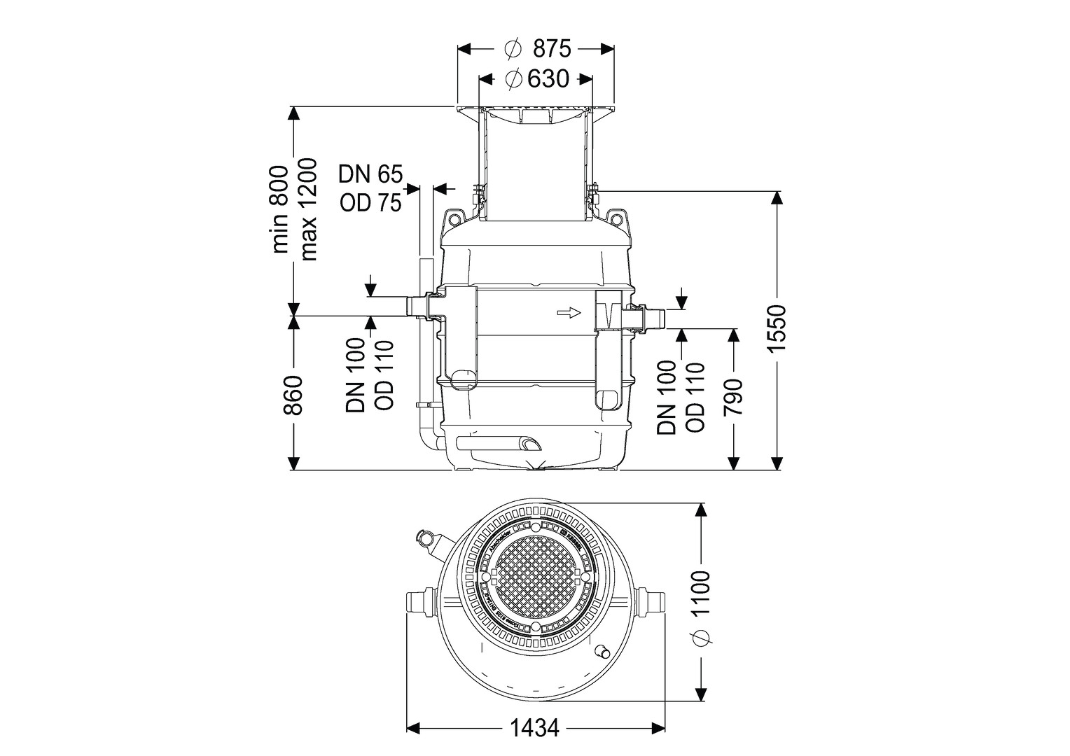 Kessel Fettabscheider EasyClean G Direct NS 4, Fließrichtung rechts, Klasse A/B, Tiefe 1200mm W556823
