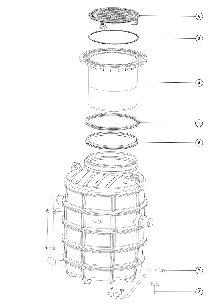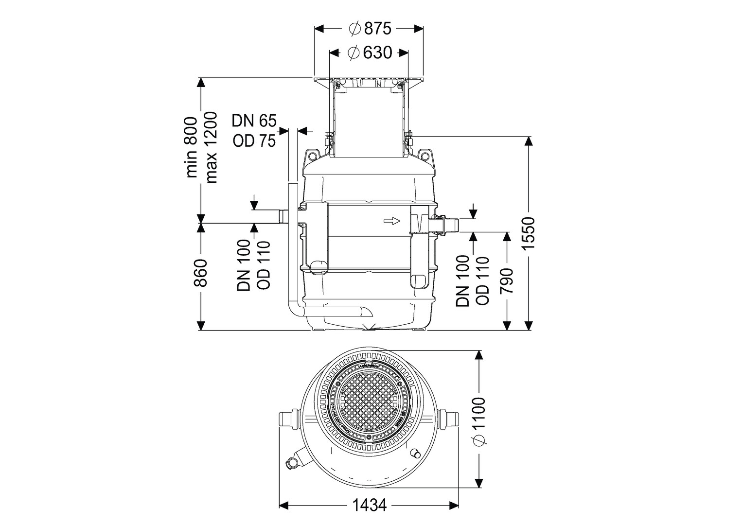 aus Kunststoff, Einbau für frostfreie Tiefe 1200 mm, Einbautiefe 1055-1225 mm, grundwasserbeständig bis 500 mm über Behältersohle, bei Belastungsklasse D ist eine Lastverteilplatte vorzusehen, teleskopisch höhenverstellbares Aufsatzstück aus Kunststoff, Abdeckung nach DIN EN 124 aus Guss (PKW-/LKW befahrbar), geruchsdicht verschlossen, Aushebeschlüssel, Durchführungsset (NS 4), Anlage komplett montiert, Zubehör Probenahmeeinrichtung, Verlängerungsstück, Hebeanlage, Schichtdicken-Messgerät für Fette, SonicControl