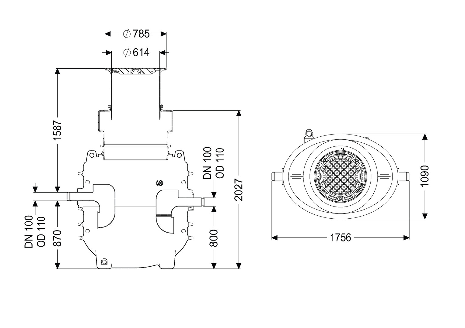 Kessel Fettabscheider EasyClean G Direkt NS 1, Einbautiefe 1190-1740 mm, oval, Abdeckung Klasse D, Fließrichtung links
