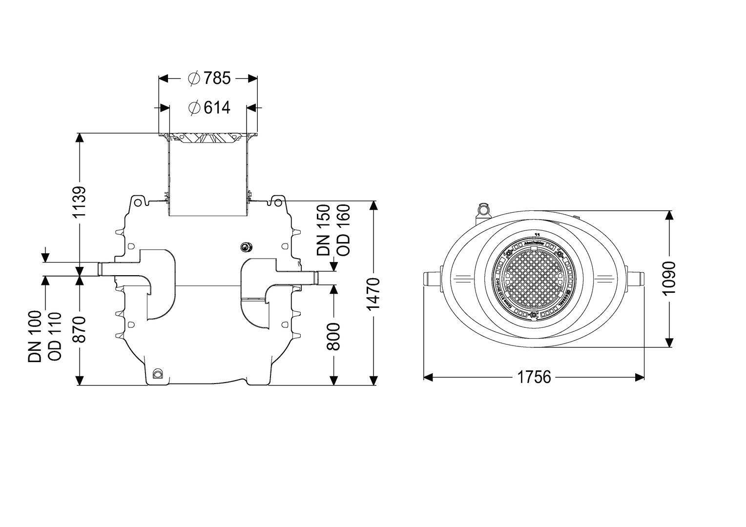 Kessel Fettabscheider EasyClean G Direkt NS 1, Einbautiefe 690-1190 mm, oval, Abdeckung Klasse B, Fließrichtung links