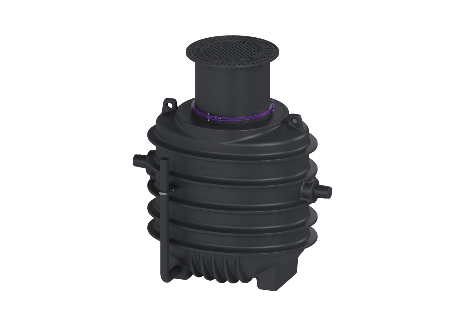 aus Kunststoff, Einbau für frostfreie Tiefe 1200 mm, Grundwasserbeständig bis Geländeoberkante, mit Direktentsorgung, teleskopisch höhenverstellbares Aufsatzstück aus Kunststoff, Abdeckung nach DIN EN 124 aus Guss (PKW-/LKW befahrbar), geruchsdicht verschlossen, Aushebeschlüssel, Anlage komplett montiert, Zubehör Probenahmeeinrichtung, Verlängerungsstück, Pumpstationen, Schichtdicken-Messgerät für Fette SonicControl