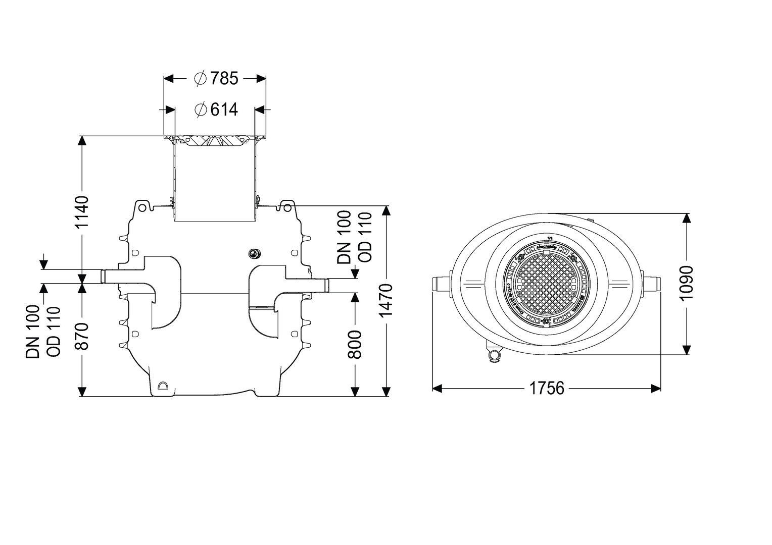 Kessel Fettabscheider EasyClean G Direkt NS 1, Einbautiefe 690-1190 mm, oval, Abdeckung Klasse B, Fließrichtung rechts