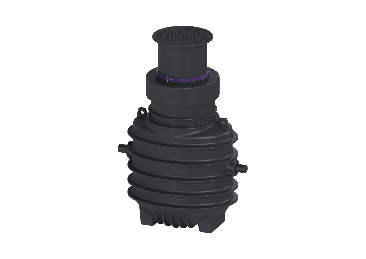 aus Kunststoff, Einbau für frostfreie Tiefe 1700 mm, Grundwasserbeständig bis Geländeoberkante, mit Direktentsorgung, teleskopisch höhenverstellbares Aufsatzstück aus Kunststoff, Abdeckung nach DIN EN 124 aus Guss (PKW-/LKW befahrbar), geruchsdicht verschlossen, Aushebeschlüssel, Anlage komplett montiert, Zubehör Probenahmeeinrichtung, Verlängerungsstück, Pumpstationen, Schichtdicken-Messgerät für Fette SonicControl