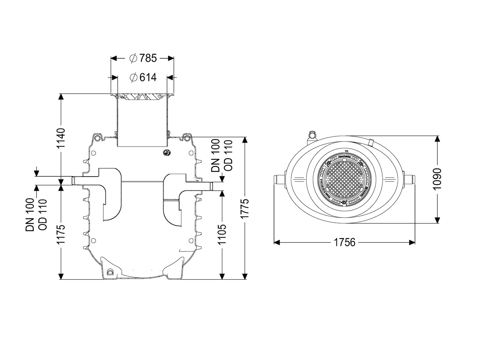 Kessel Fettabscheider EasyClean G Direkt NS 4, Einbautiefe 690-1190 mm, oval, Abdeckung Klasse B, Fließrichtung links