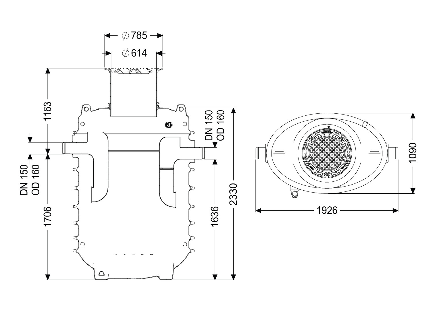 Kessel Fettabscheider EasyClean G Direkt NS 7, Einbautiefe 925-1215 mm, oval, Abdeckung Klasse D, Fließrichtung rechts