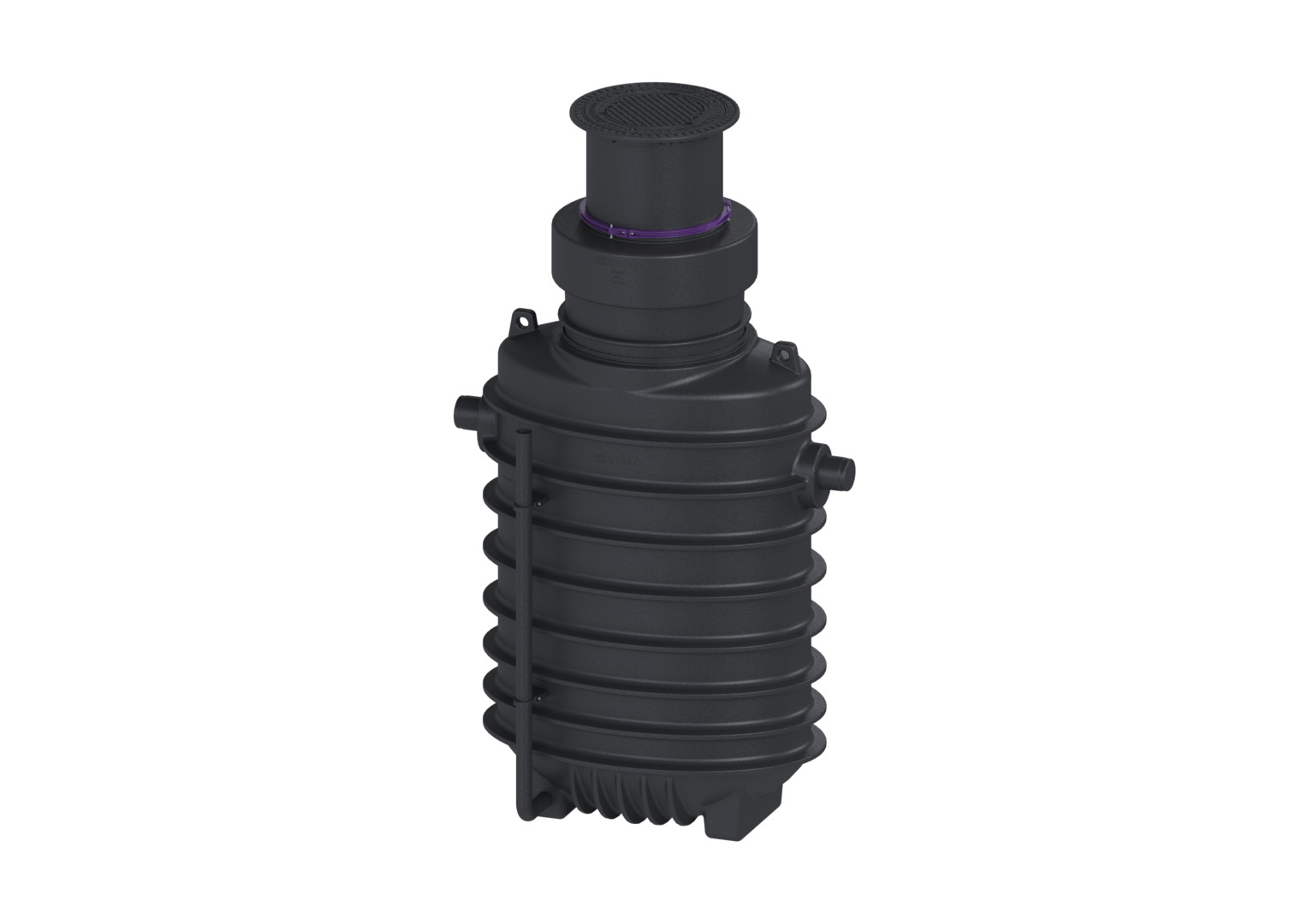 mit Lock & Lift-Funktion, aus Kunststoff, Einbau für frostfreie Tiefe 1700 mm, Grundwasserbeständig bis Geländeoberkante, bei Belastungsklasse D ist eine Lastverteilplatte vorzusehen, mit Direktentsorgung, teleskopisch höhenverstellbares Aufsatzstück aus Kunststoff, Abdeckung nach DIN EN 124 aus Guss (PKW-/LKW befahrbar), geruchsdicht verschlossen, Aushebeschlüssel, Anlage komplett montiert, Zubehör Probenahmeeinrichtung, Verlängerungsstück, Pumpstationen, Schichtdicken-Messgerät für Fette SonicControl