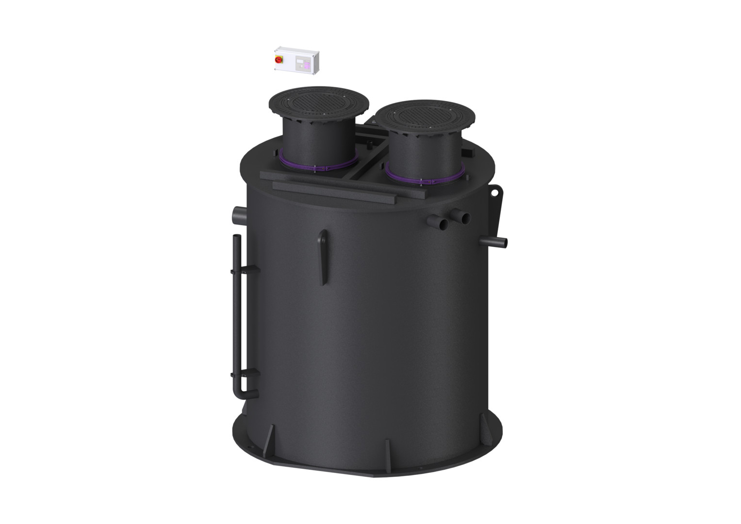 aus Kunststoff, Einbau für frostfreie Tiefe 1200 mm, Einbau bis Grundwasser GOK, min. Einbautiefe erreichbar durch Ablängen des Aufsatzstückes, mit Fettabscheider im Wickelrohr, mit integrieter Probenahme, Pumpstation in Nassaufstellung mit Pumpen GTK 1300-S1 (NS 7 und 10), GTK 1400 (NS 4), teleskopisch höhenverstellbares Aufsatzstück aus Kunststoff, Abdeckung nach DIN En 124 aus Guss (PKW- bzw. LKW-befahrbar) geruchsdicht verschlossen, Auslieferung Abscheider komplett montiert, Pumpen separat, Zubehör Schichtdicken-Messgerät für Fette SonicControl