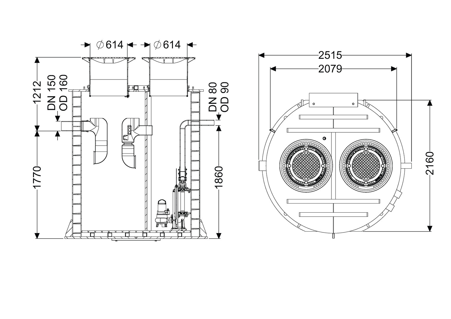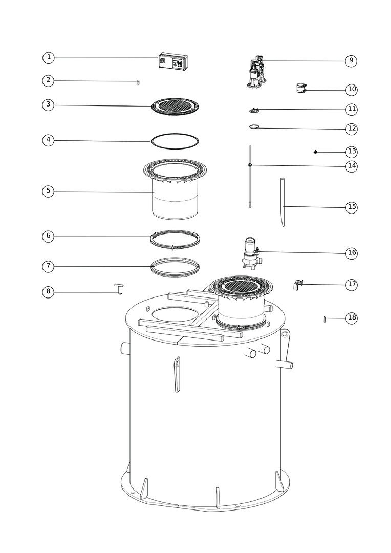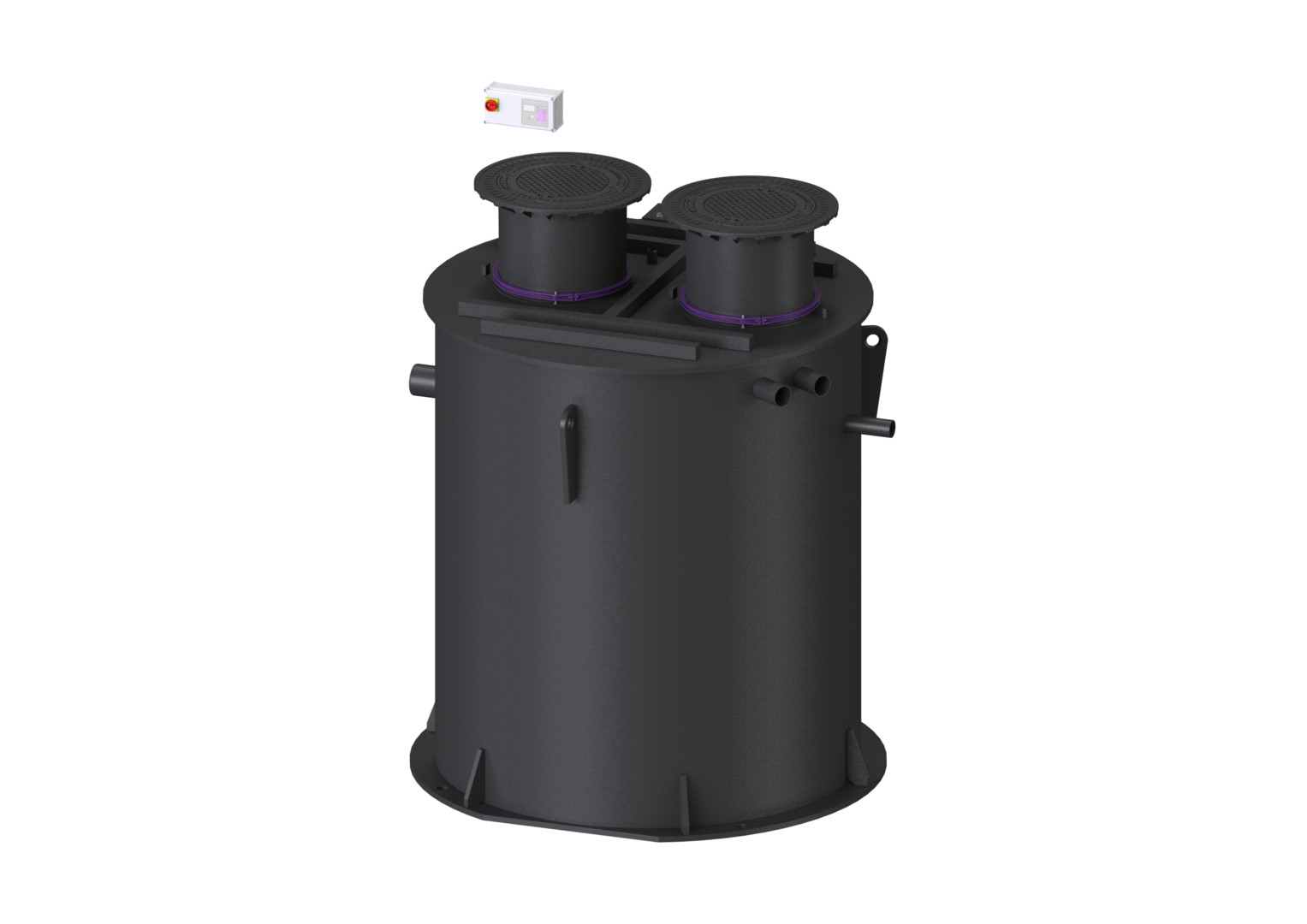 aus Kunststoff, Einbau für frostfreie Tiefe 1200 mm, Einbau bis Grundwasser GOK, min. Einbautiefe erreichbar durch Ablängen des Aufsatzstückes, mit Fettabscheider im Wickelrohr, mit integrieter Probenahme, Pumpstation in Nassaufstellung mit Pumpen GTK 1300-S1 (NS 7 und 10), GTK 1400 (NS 4), teleskopisch höhenverstellbares Aufsatzstück aus Kunststoff, Abdeckung nach DIN En 124 aus Guss (PKW- bzw. LKW-befahrbar) geruchsdicht verschlossen, Auslieferung Abscheider komplett montiert, Pumpen separat, Zubehör Schichtdicken-Messgerät für Fette SonicControl