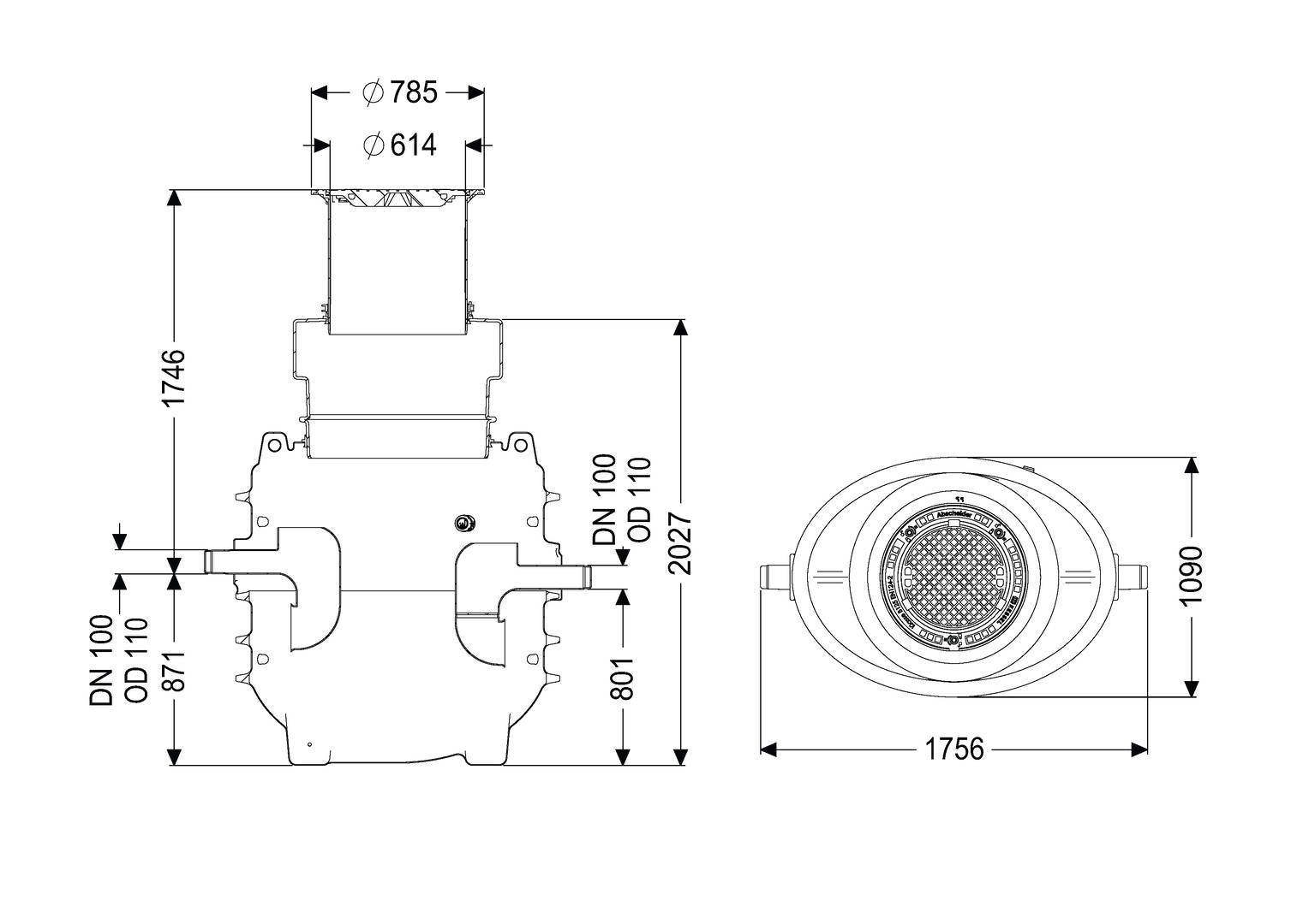 Kessel Fettabscheider EasyClean G NS 1, Einbautiefe 1040-1740 mm, oval, Abdeckung Klasse B W557004