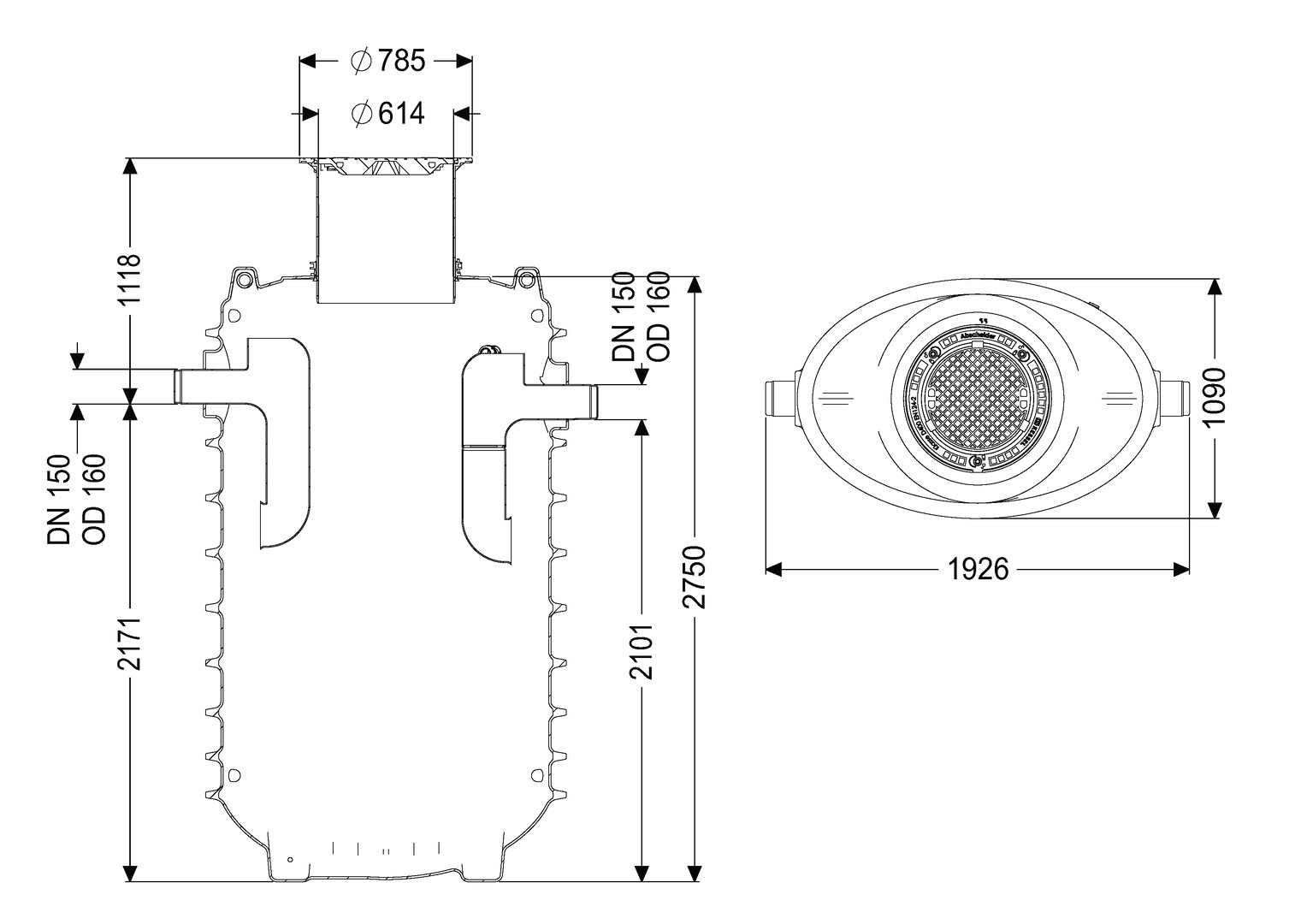 Kessel Fettabscheider EasyClean G NS 2, Einbautiefe 900-1190 mm, oval, Abdeckung Klasse D W557013