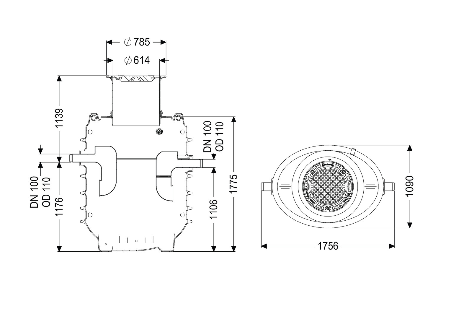 Kessel Fettabscheider EasyClean G NS 1, Einbautiefe 900-1190 mm, oval, Abdeckung Klasse D W557001