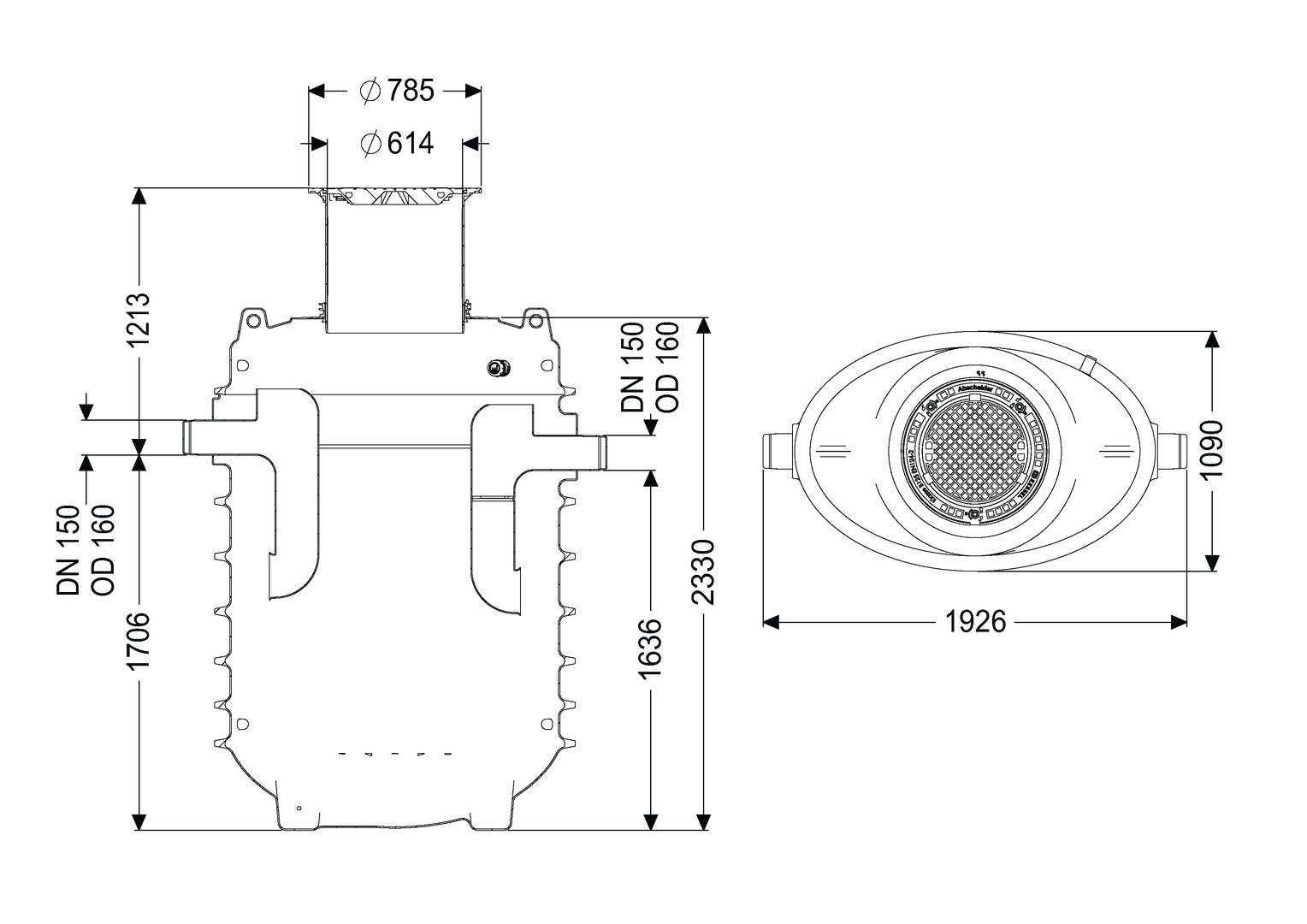 Kessel Fettabscheider EasyClean G NS 1, Einbautiefe 690-1190 mm, oval, Abdeckung Klasse B W556998