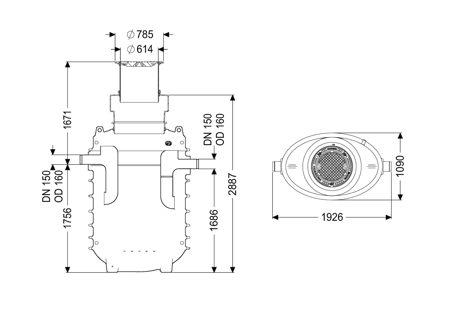 Kessel Fettabscheider EasyClean G NS 2, Einbautiefe 1040-1740 mm, oval, Abdeckung Klasse B W557016