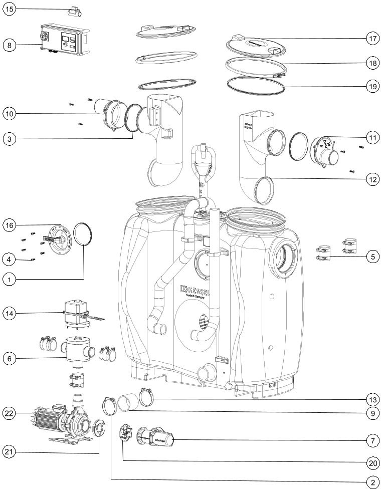 Kessel Fettabscheider EasyClean free Auto Mix & Pump NS 10, ohne Sonic Control W556883