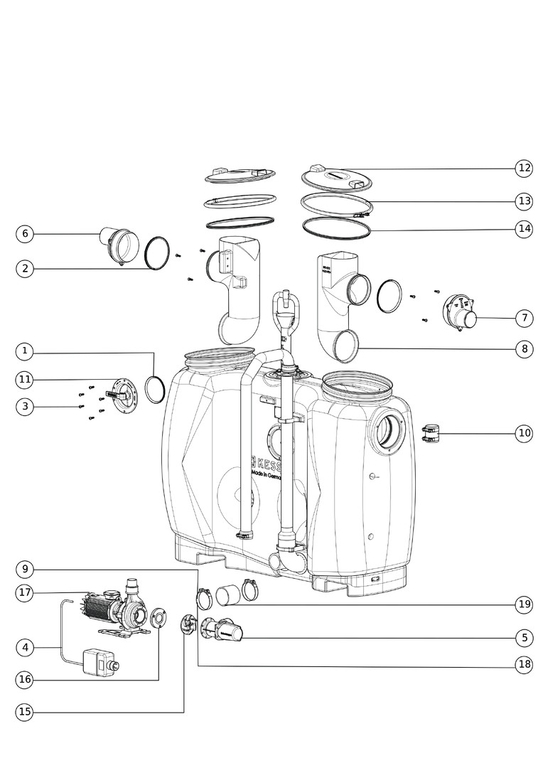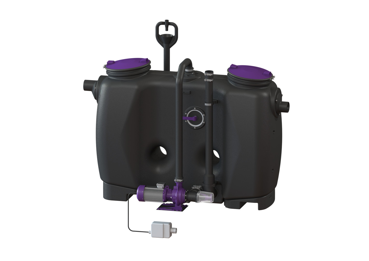 mit Direktentsorgung und Schredder-Mix-System, nach DIN EN 1825 und DIN 4040-100, aus Kunststoff, Pumpenleistung 3 kW, mit Fülleinrichtung und Fernbedienung, zur freien Aufstellung in frostgeschützten Räumen Ausführung in Fließrichtung rechts, kann durch Austauschen des Zu-/Ablaufstutzens in Fließrichtung links geändert werden. Zubehör: Schauglas, Probeentnahmeeinrichtung, Hebeanlagen.