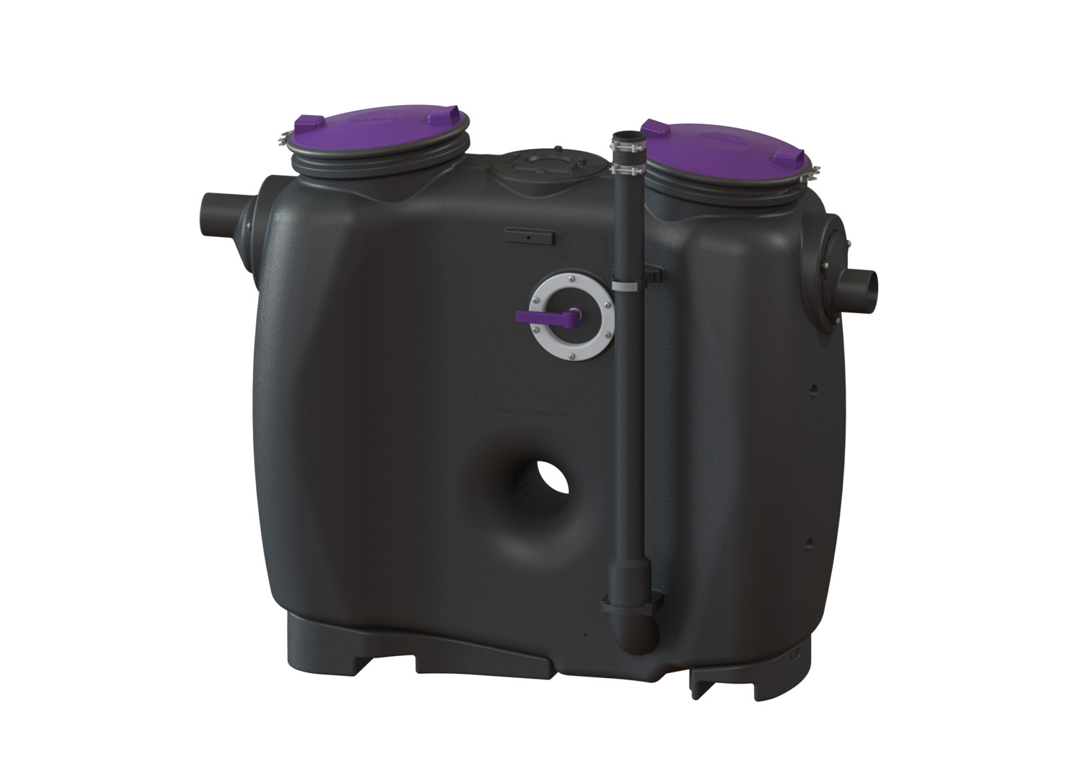 mit Direktentsorgung nach DIN EN 1825 und DIN 4040-100, aus Kunststoff, zur freien Aufstellung in frostgeschützten Räumen, Ausführung in Fließrichtung rechts, kann durch Austauschen des Zu-/Ablaufstutzens in Fließrichtung links geändert werden, Zulassungsnummer Z-54.1-474, Anlage komplett montiert, Zubehör Schauglas und Fülleinrichtung, Probeentnahmeeinrichtung, Hebeanlagen