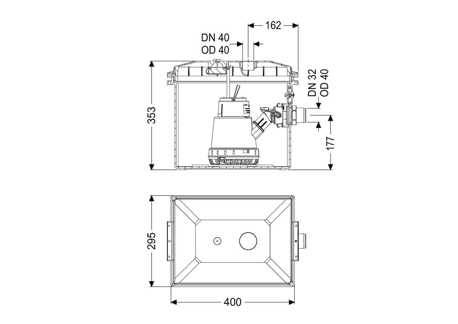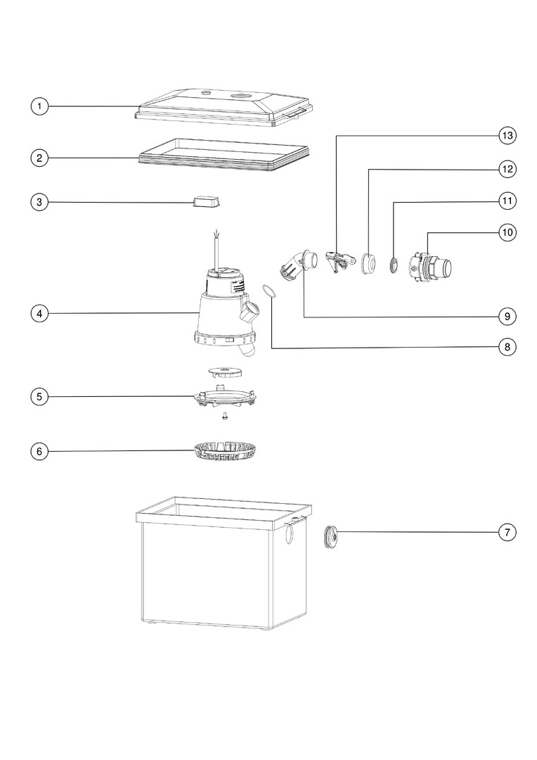 aus Kunststoff, zur Überflurinstallation, mit Schwimmerschaltung, entnehmbare Pumpe, mit Aktivkohlefilter, Kabellänge 5 m, steckerfertig