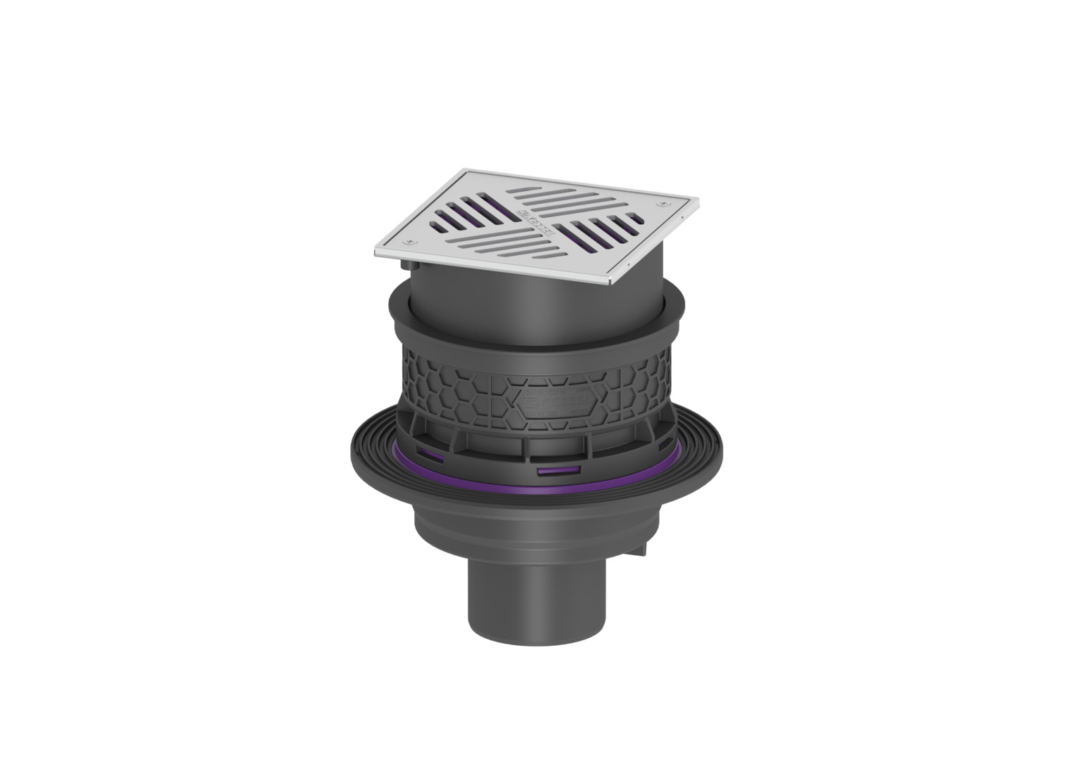Kessel Kellerablauf Universale Plus DN 100, Auslauf senkrecht, 187 x 187 mm Schlitzrost Edelstahl, verschraubt