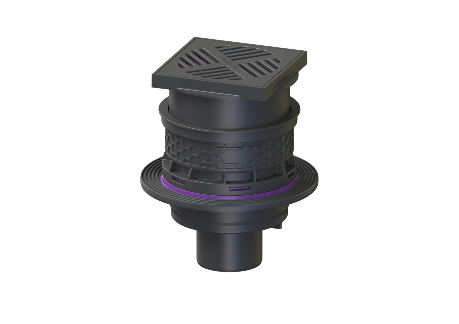 Kessel Kellerablauf Universale Plus DN 100, Auslauf senkrecht, 188 x 188 mm Schlitzrost Kunststoff, schwarz W555491