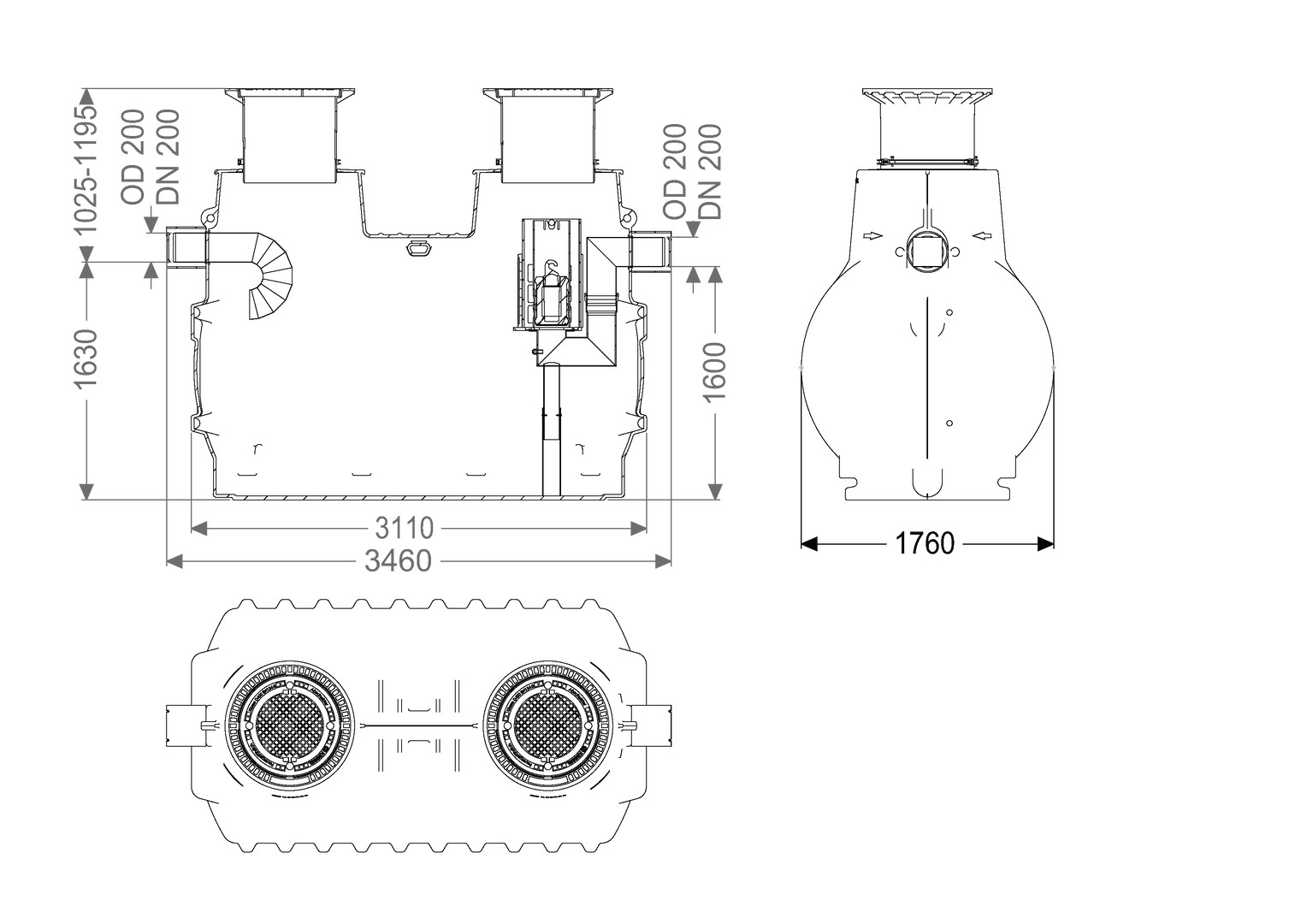 zum Einbau ins Erdreich mit DIBT-Zulassung, aus Kunststoff, Einbau bei Grundwasser ist bis Oberkante Behälter (OKB) möglich, bei Belastungsklasse D ist eine Lastverteilplatte vorzusehen, herausnehmbaren Koaleszenzeinsatz, teleskopisch höhenverstellbares Aufsatzstück aus Kunststoff, neigbar bis 5°, Abdeckung nach DIN EN 124 aus Beton/Guss (PKW-/LKW-befahrbar), Aushebeschlüssel, geeignet für Tankstellen mit Hochleistungszapfsäulen E 10 und Biodiesel, Zubehör Probenahmeeinrichtung zum Erdeinbau, Verlängerungsstück für vertieften Einbau, Alarmanlagen bei Erreichen der maximalen Ölschicht (auf Anfrage) und bei Aufstau (gefordert nach DIN EN 858, Teil 1), Öl- und Schlammabsaugeeinrichtung, Pumpstation, Schichtdicken-Messgerät SonicControl