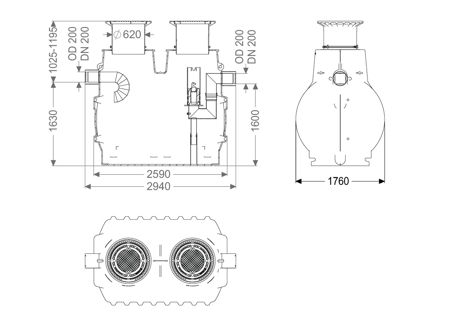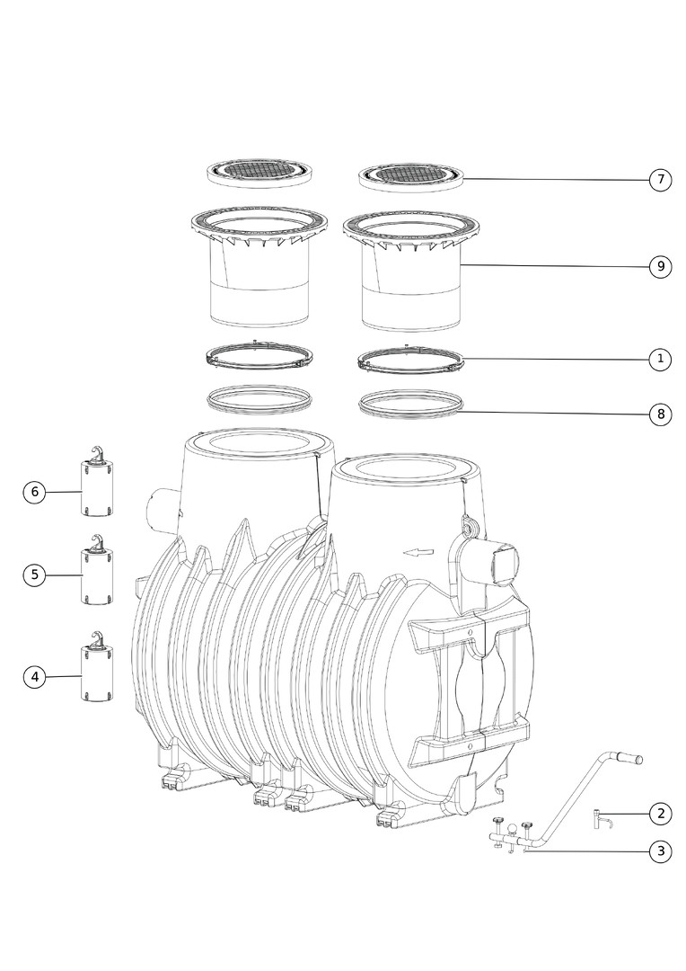 zum Einbau ins Erdreich mit DIBT-Zulassung, aus Kunststoff, Einbau bei Grundwasser ist bis Oberkante Behälter (OKB) möglich, bei Belastungsklasse D ist eine Lastverteilplatte vorzusehen, teleskopisch höhenverstellbares Aufsatzstück aus Kunststoff, neigbar bis 5°, Abdeckung nach DIN EN 124 aus Beton/Guss (PKW-/LKW-befahrbar), Aushebeschlüssel, geeignet für Tankstellen mit Hochleistungszapfsäulen E 10 und Biodiesel, Zubehör Probenahmeeinrichtung zum Erdeinbau, Verlängerungsstück für vertieften Einbau, Alarmanlagen bei Erreichen der maximalen Ölschicht (auf Anfrage) und bei Aufstau (gefordert nach DIN EN 858, Teil 1), Öl- und Schlammabsaugeeinrichtung, Koaleszenzfiltereinsatz zur Nachrüstung zum Koaleszenzabscheider, Pumpstation, Schichtdicken-Messgerät SonicControl