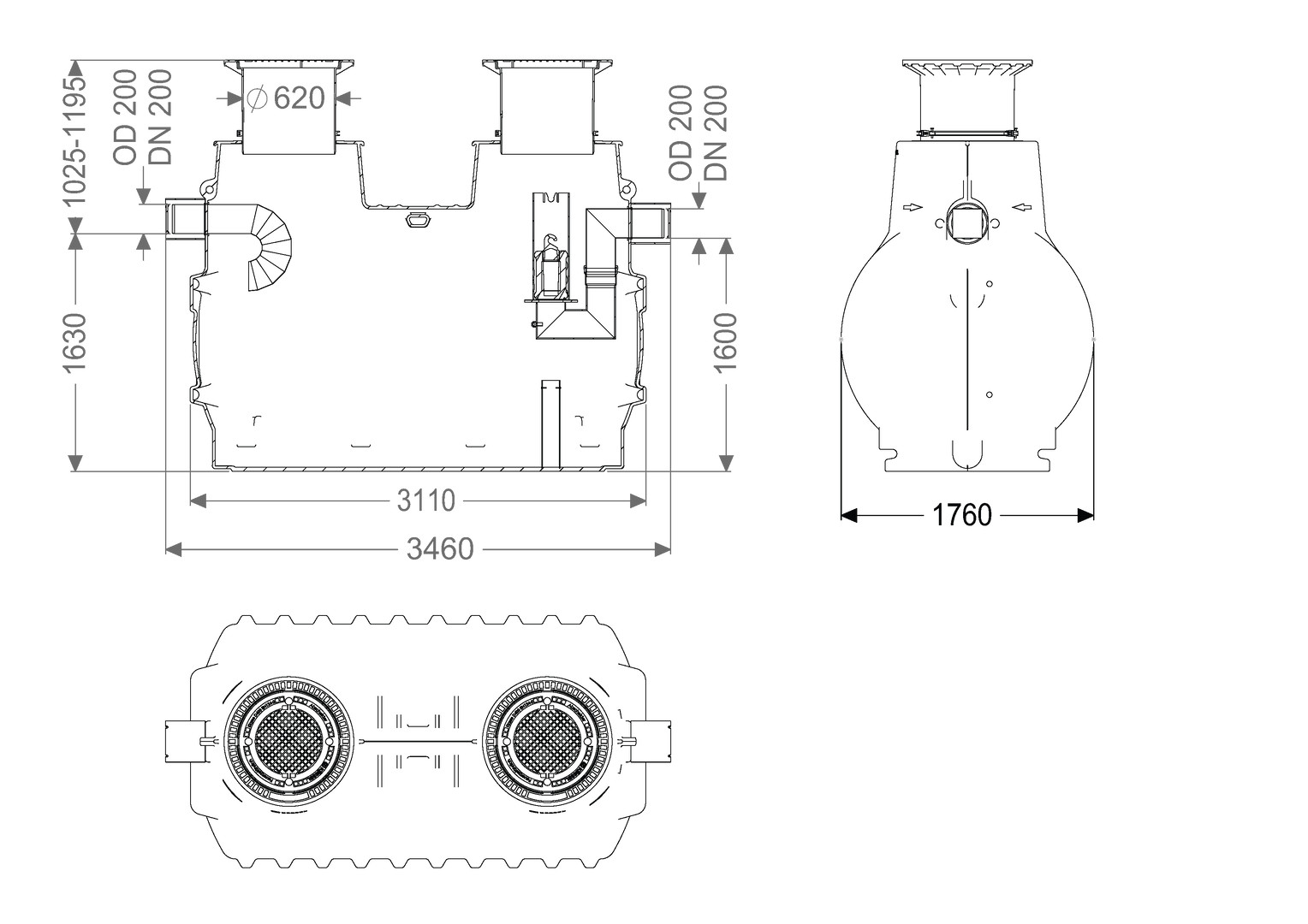 zum Einbau ins Erdreich mit DIBT-Zulassung, aus Kunststoff, Einbau bei Grundwasser ist bis Oberkante Behälter (OKB) möglich, bei Belastungsklasse D ist eine Lastverteilplatte vorzusehen, teleskopisch höhenverstellbares Aufsatzstück aus Kunststoff, neigbar bis 5°, Abdeckung nach DIN EN 124 aus Beton/Guss (PKW-/LKW-befahrbar), Aushebeschlüssel, geeignet für Tankstellen mit Hochleistungszapfsäulen E 10 und Biodiesel, Zubehör Probenahmeeinrichtung zum Erdeinbau, Verlängerungsstück für vertieften Einbau, Alarmanlagen bei Erreichen der maximalen Ölschicht (auf Anfrage) und bei Aufstau (gefordert nach DIN EN 858, Teil 1), Öl- und Schlammabsaugeeinrichtung, Koaleszenzfiltereinsatz zur Nachrüstung zum Koaleszenzabscheider, Pumpstation, Schichtdicken-Messgerät SonicControl