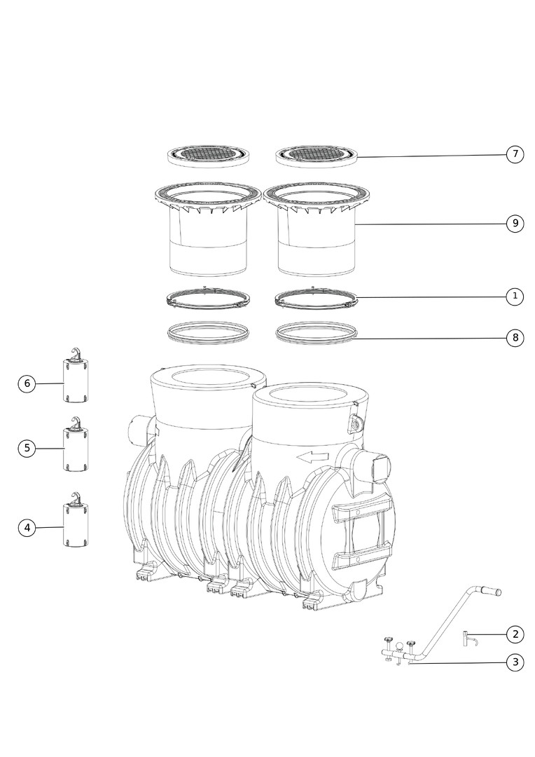 zum Einbau ins Erdreich mit DIBT-Zulassung, aus Kunststoff, Einbau bei Grundwasser ist bis Oberkante Behälter (OKB) möglich, bei Belastungsklasse D ist eine Lastverteilplatte vorzusehen, teleskopisch höhenverstellbares Aufsatzstück aus Kunststoff, neigbar bis 5°, Abdeckung nach DIN EN 124 aus Beton/Guss (PKW-/LKW-befahrbar), Aushebeschlüssel, geeignet für Tankstellen mit Hochleistungszapfsäulen E 10 und Biodiesel, Zubehör Probenahmeeinrichtung zum Erdeinbau, Verlängerungsstück für vertieften Einbau, Alarmanlagen bei Erreichen der maximalen Ölschicht (auf Anfrage) und bei Aufstau (gefordert nach DIN EN 858, Teil 1), Öl- und Schlammabsaugeeinrichtung, Koaleszenzfiltereinsatz zur Nachrüstung zum Koaleszenzabscheider, Pumpstation, Schichtdicken-Messgerät SonicControl