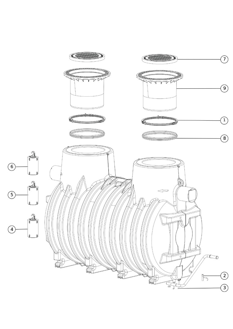 zum Einbau ins Erdreich mit DIBT-Zulassung, aus Kunststoff, Einbau bei Grundwasser ist bis Oberkante Behälter (OKB) möglich, bei Belastungsklasse D ist eine Lastverteilplatte vorzusehen, teleskopisch höhenverstellbares Aufsatzstück aus Kunststoff, neigbar bis 5°, Abdeckung nach DIN EN 124 aus Beton/Guss (PKW-/LKW-befahrbar), Aushebeschlüssel, geeignet für Tankstellen mit Hochleistungszapfsäulen E 10 und Biodiesel, Zubehör Probenahmeeinrichtung zum Erdeinbau, Verlängerungsstück für vertieften Einbau, Alarmanlagen bei Erreichen der maximalen Ölschicht (auf Anfrage) und bei Aufstau (gefordert nach DIN EN 858, Teil 1), Öl- und Schlammabsaugeeinrichtung, Koaleszenzfiltereinsatz zur Nachrüstung zum Koaleszenzabscheider, Pumpstation, Schichtdicken-Messgerät SonicControl