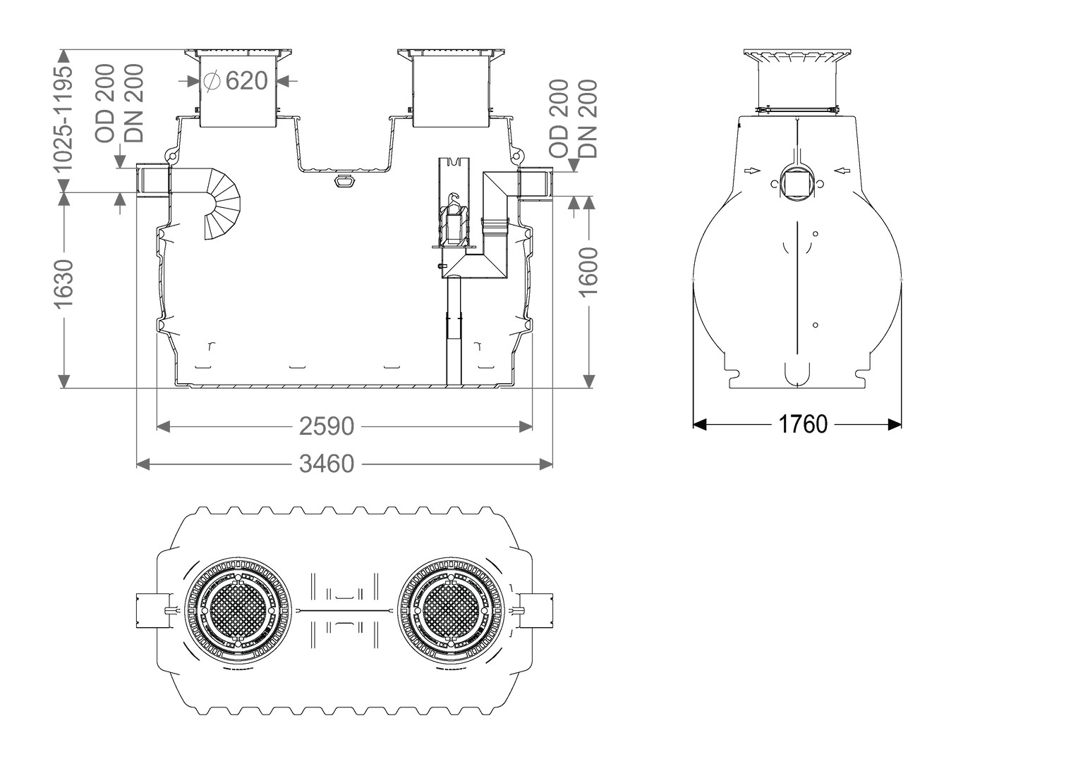 | Rohraußendurchmesser alle Anschlüsse | 200 mm |