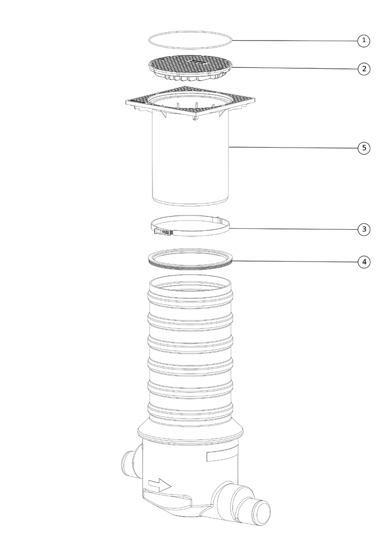 aus Kunststoff, zum Einbau ins Erdreich, zum Anschluss an die Ableitung von Abscheideranlagen, leerlaufend, Einbautiefe 400-1300 mm (minimale Einbautiefe erreichbar durch Absägen), Absturzhöhe 120 mm, teleskopisch höhenverstellbares Aufsatzstück mit Klemmring, geruchsdicht verschraubt, ohne Aushebeschlüssel, Aufstockung 600 mm, mit Verlängerungsstück Artikel 915 402