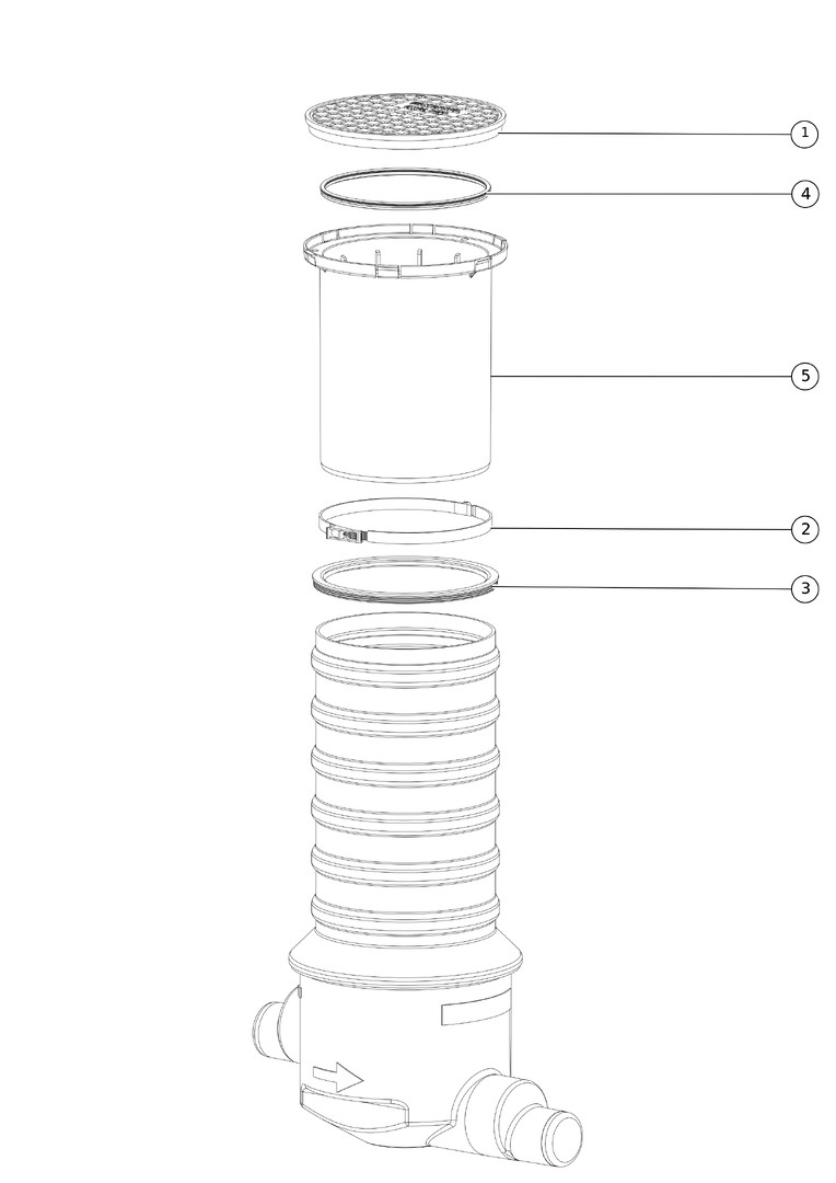 aus Kunststoff, zum Einbau ins Erdreich, zum Anschluss an die Ableitung von Abscheideranlagen, leerlaufend, Einbautiefe 400-1300 mm (minimale Einbautiefe erreichbar durch Absägen), Absturzhöhe 120 mm, teleskopisch höhenverstellbares Aufsatzstück mit Klemmring, geruchsdicht verschraubt, ohne Aushebeschlüssel, Aufstockung 600 mm, mit Verlängerungsstück Artikel 915 402