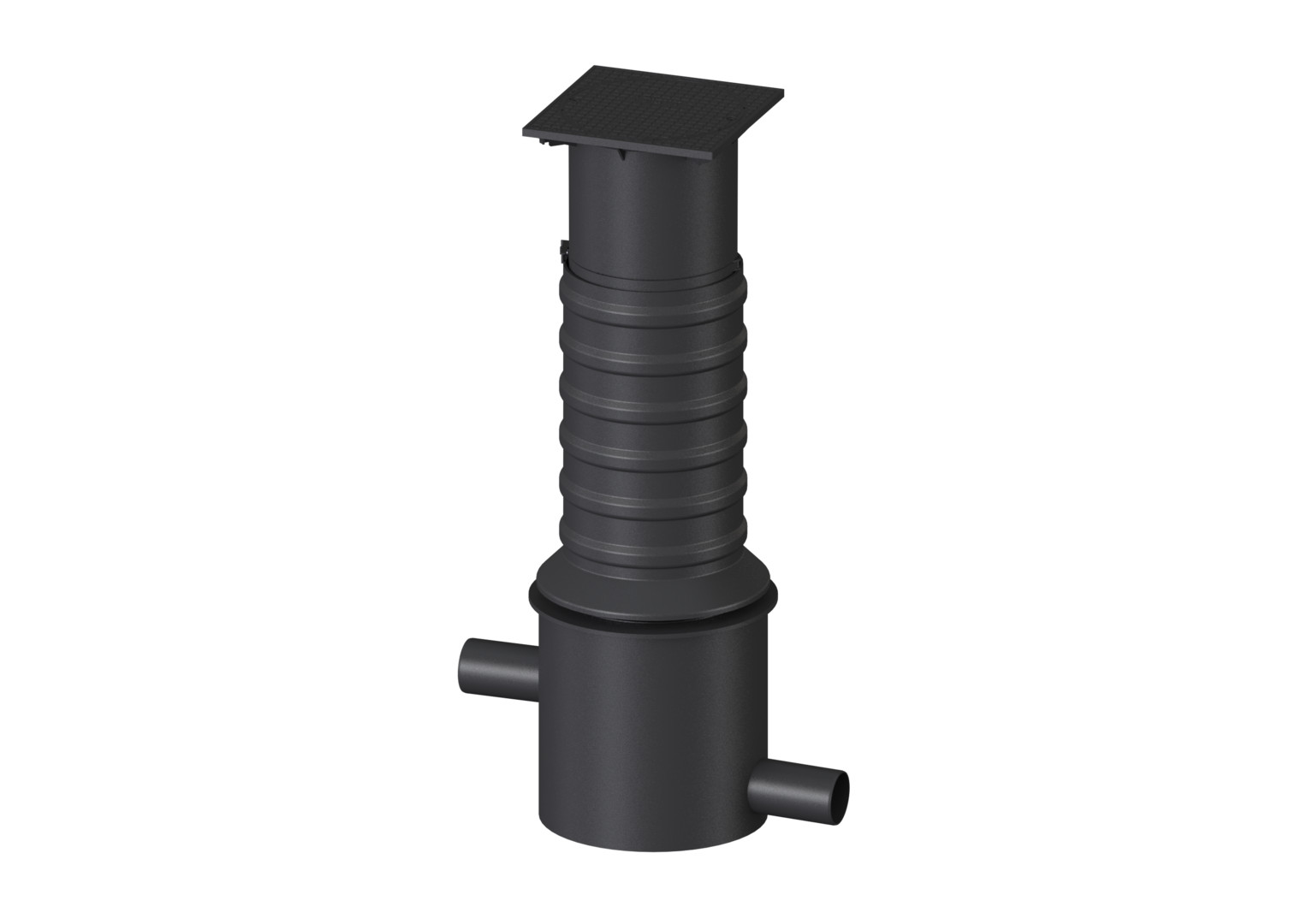 aus Kunststoff, zum Einbau ins Erdreich, zum Anschluss an die Ableitung von Abscheideranlagen, leerlaufend, Einbautiefe 950-1300 mm, Absturzhöhe 160 mm nach DIN, teleskopisch höhenverstellbares Aufsatzstück mit Klemmring, geruchsdicht verschlossen, ohne Aushebeschlüssel, Aufstockung 600 mm, mit Verlängerungsstück Artikel 915 402, reduzierter Sohlsprung von 30-160 mm auf Anfrage