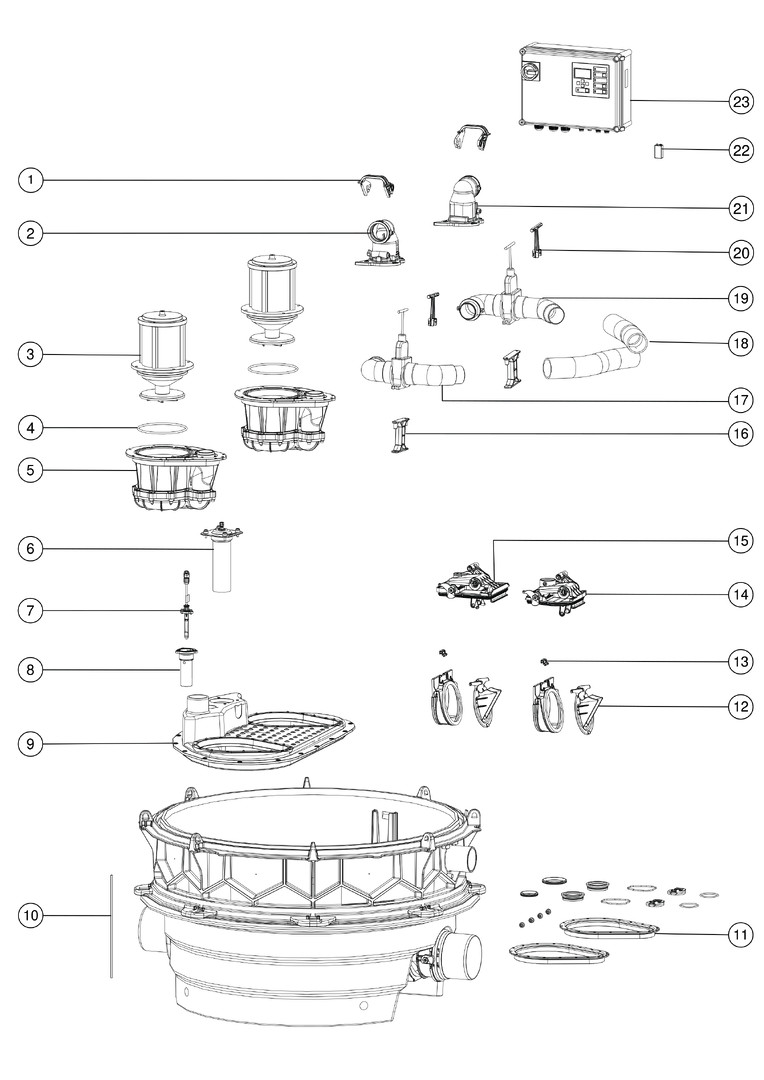 Trockenaufstellung, für fäkalienhaltiges Abwasser, Bodenteil aus PE, für Einbau in frostgeschützten Räumen (frei aufgestellt) oder in Kombination mit Technikschacht-Modul, zum Einbau ins Erdreich, beständig bei Einbau ins Grundwasser bis 3000 mm, die Druckleitung ist als geschweißtes PE-Rohr, bei Pumpe SPF 4500 zusätzlich in einem Druckentspannungsschacht auszuführen, Rückstauhebeanlage Ecolift XL Duo, Zulauf/Auslauf DN 150, mit Comfort Plus-Schaltgerät, mit zwei mechanischen Klappen für Grauwasser, 230 V-Versionen steckerfertig, Kabellänge 10 m