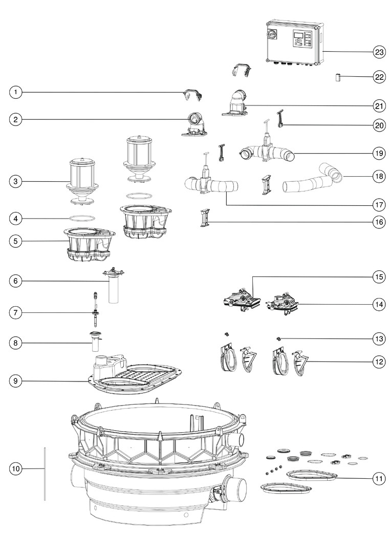 Trockenaufstellung, für fäkalienhaltiges Abwasser, Bodenteil aus PE, für Einbau in frostgeschützten Räumen (frei aufgestellt) oder in Kombination mit Technikschacht-Modul, zum Einbau ins Erdreich, beständig bei Einbau ins Grundwasser bis 3000 mm, die Druckleitung ist als geschweißtes PE-Rohr, bei Pumpe SPF 4500 zusätzlich in einem Druckentspannungsschacht auszuführen, Rückstauhebeanlage Ecolift XL Duo, Zulauf/Auslauf DN 150, mit Comfort Plus-Schaltgerät, mit zwei mechanischen Klappen für Grauwasser, 230 V-Versionen steckerfertig, Kabellänge 10 m